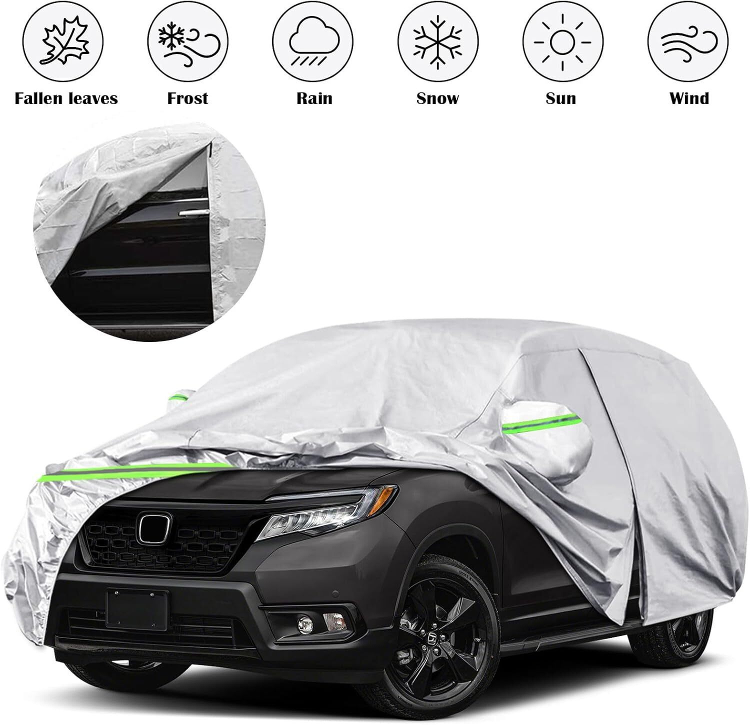 Waterproof SUV Car Cover Custom Fit for 2019-2024 Honda Passport, 6 Layers All Weather Car Covers with Zipper Door Windproof Bands for Sun Snow Rain Dust Protection, Outdoor Indoor