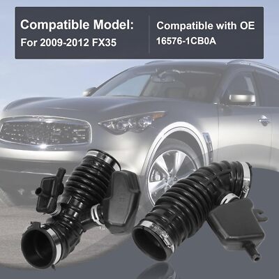 Replaces part number: 16576-1CB1A, 165761CB1A, 16576-1CB0A, 165761CB0A Compatibility: Compatible with FX35 Base Sport Utility 4-Door 3.5L V6 2009-2012. Material: This intake boot tube outlet ductis is made of good material to ensure reliable performance and not easy to damage Installation advantage: The engine air intake hose is easy to install and remove. No need for professional skills and complex tools, find the interface to remove the old pipe, replace it with a new one and fix it, it can be completed in 10 minutes Package includes: 2 x Air cleaner hose ( Front Left Right Side)