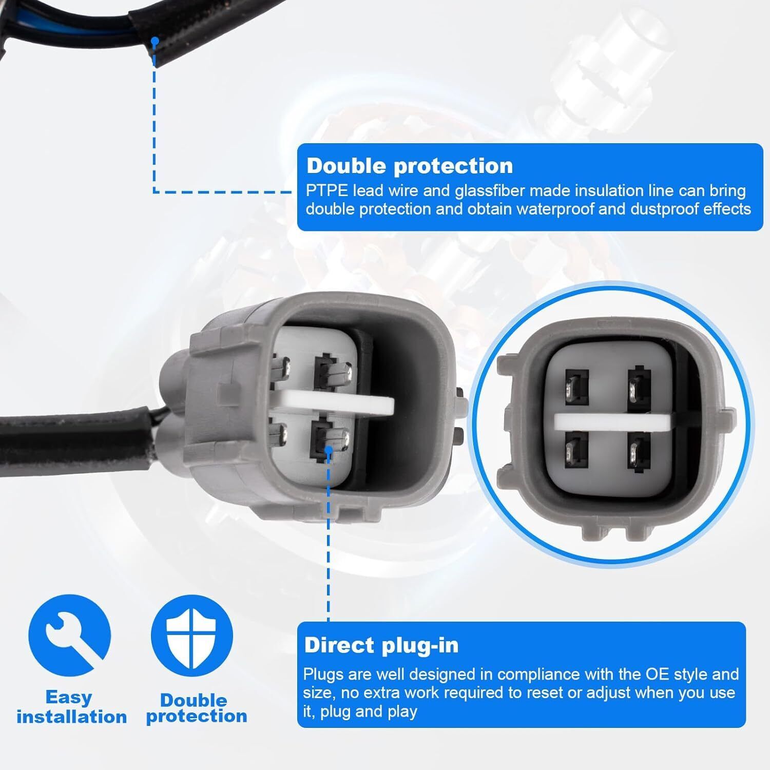 COMPATIBILITY: Oxygen O2 Sensor 234-9009 Compatible With Lexus 1998-1999 ES300, 1999-2003 RX300, Toyota 1997-1999 Avalon, 1998-2000 Camry, 2001-2003 Highlander, 1999-2000 Sienna, 1999-2000 Solara. CAUTIONS: Please check your vehicle fitment carefully in the product description. Please check your part pictures with our pictures, especially the plug, it must be completely the same. Or it will not fit your car. ABOUT THE OXYGEN SENSOR: The part of the heating head of the plugs is well designed to replace your needs, no extra work is required to reset or adjust when you use it, plug and play The part of the wire is 4, this design provides double protection, and the wire is very firm. HOW TO CHOOSE: Please check the description or use the year/make/model drop-down bar and interchangeable part numbers to confirm the compatibility. HOW TO INSTALL: Step 1. Locate the oxygen sensor position and remove it with a socket, step 2. Compare the new sensor to the old sensor to ensure a proper installation, step3. Please clean the threaded port to ensure a proper seal of the new sensor, step 4. Gently tighten the sensor in order to keep the wire free from damage and avoid sensor leakage, step 5, reinstall the connector, and try to clear it if the car has diagnostic trouble codes
