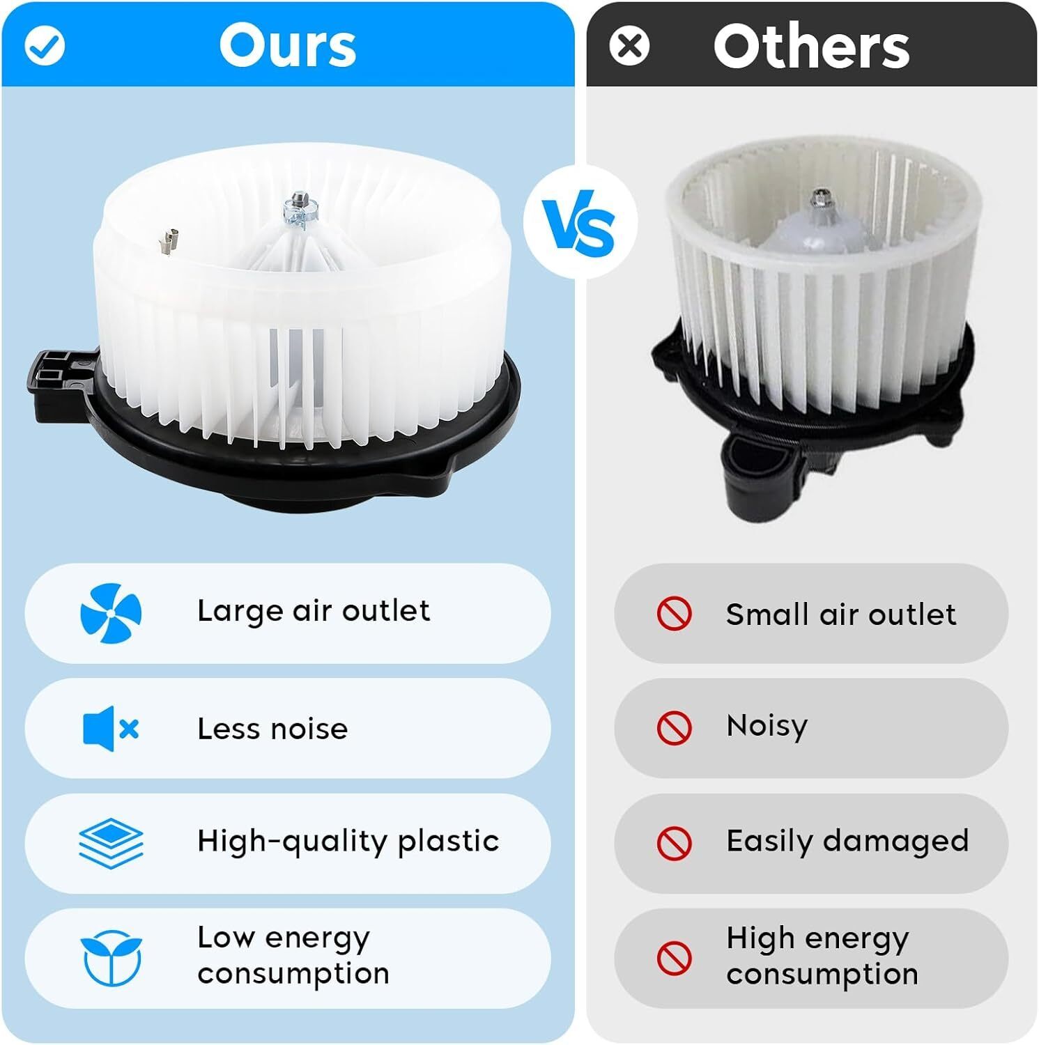 ?Vehicle Fitment?Compatible with 2005-2012 Acura RL / 2005-2010 Odyssey / 2006-2007 Ridgeline ?Reference Number?Compatible with 700192, 79310SHJA01, 75735, PM9304, BM9304, 90221035736, 90221035, HO3126109, 79310-SJC-A02, 79310-SHJ-A01, HO3126109, 2400-325935, R2031-168262, BM9304C ?Premium Quality?Designed to keep your vehicle's HVAC system in top shape; Durable Material: Material of rotor punching plate is silicon steel. Enameled wire is used copper enameled wire. ?Easy to Install?Same Dimensions as your part, Directly Fit; Stable characteristics and high reliability; Larger Air Volume and Lower Noise ?Attention?Please check the descriptions and compatibility chart to ensure that the replacement fits your auto before your purchasing.