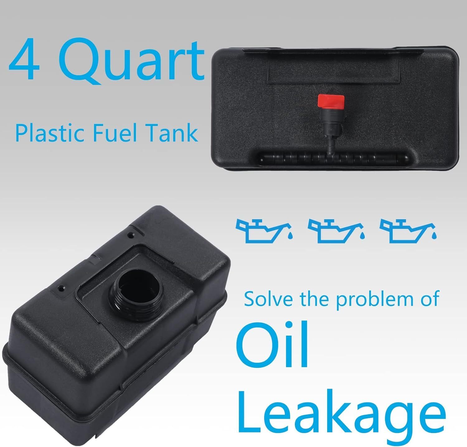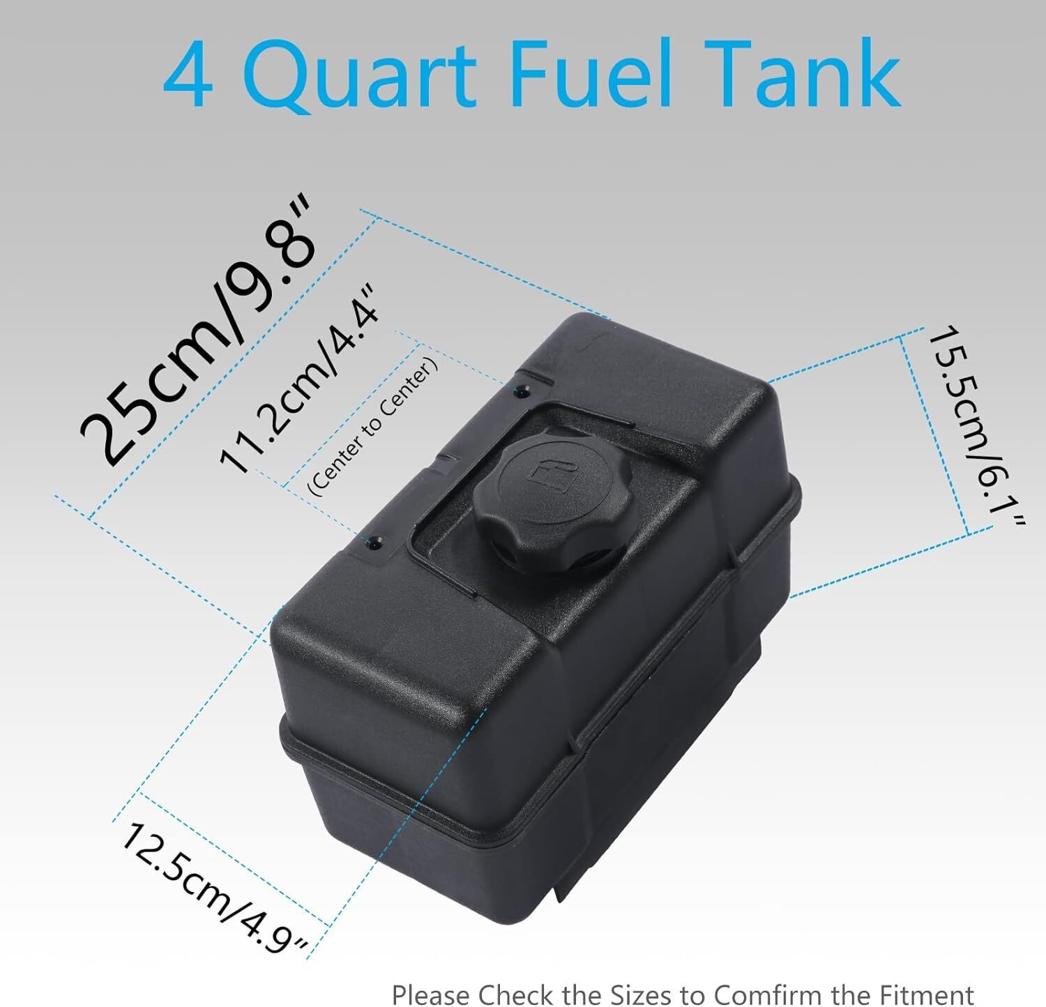 ? See more product details Why Replacement 4 Quart Plastic Fuel Tank? When the seams of your original tank are broken, will constantly leak oil. You need to replace a new fuel tank can solve this oil leak problem perfectly. Durable Material The fuel tank is made of high-quality plastic and is constructed and tested according to strict quality control standards, prolonging its service life. Reliable Quality The fuel valve insertion hole is made of high-quality aluminum alloy, which is not easy to be damaged. Perfect Sealing The fuel cap is tightly sealed and will not leak. Easy to Install The top of the fuel tank has a place for mounting brackets and screw holes, fixed to the top of the fuel tank with two bolts. For remote mounting. 4 Quart Tank-Fuel works with the following types of products: For Lawn and garden equipment engines For Troy-bilt Garden way chipper/shredder Also can be used on some specific snow blowers, tillers, leaf blowers, log splitters, etc Horsepower: 8 HP Briggs Stratton Fuel Tank Part No 691993 Supersedes 493337, 490572, 490579 Also replaces Garden Way (Troy bilt) part numbers 1918646 191864MA Package Includes: 1x Fuel Tank 1x Cap 1x Fuel Shut-Off Valve Notes Please work in a well-ventilated area when installing this part. Drain the existing fuel from the tank and disconnect the spark plug wire before beginning the repair. Allow the engine to cool for 2 minutes before refueling. Dimensions: Length: 9.8 inches (25cm) Width: 4.9 inches (12.5cm) Height: 6.1 inches (15.5cm)