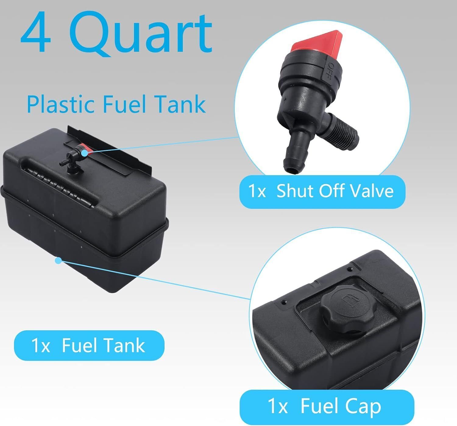 691993 Fuel Tank, 4 Quart Plastic Gas Tank with Shut Off Valve and Cap