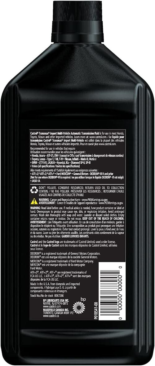Note: Castrol does not recommend Import Multi-Vehicle ATF for use in continuously variable transmissions (CVTs) or where Ford Type F or GM DEXRON-VI fluids are required