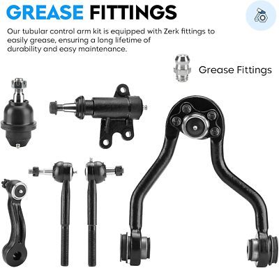 ? Compatible with: for Cadillac Escalade 1999-2000 4WD, for Chevy GMC K1500/ K1500 Suburban 1995-1999 4WD, for Chevy GMC K2500/ K2500 Suburban 1995 4WD, for Chevy Tahoe 1995-1999 4WD, for Chevy Tahoe 2000 5.7L 4WD, for GMC Yukon 1995-1999 4WD, for GMC Yukon 2000 5.7L 4WD. Note: For more details, please see the product description. ? Kit Includes: 1x Front Upper Control Arm w/ Ball Joint Assembly - Driver Side - K620719 1x Front Upper Control Arm w/ Ball Joint Assembly - Passenger Side -, K620720, 2x Front Lower Ball Joints - K6477, 2x Front Sway Bar End Link - Driver and Passenger Side - K80631 ? Kit Includes: 2x Front Outer Tie Rod End - Driver and Passenger Side --for ES2836, 2x Front Inner Tie Rod Ends - ES2838, 2x Tie Rod Adjusting Sleeves - ES2004, 1x Pitman Arm - K6335, 1x Idler Arm - K6447, 1x Idler Arm Bracket - K6722 ?Improve Ride Confort: Good quality reduces the road feedback brought by the vehicle during driving, allowing you to have a smooth and good driving experience ?Quality Assurance: 12-month warranty! tested before shipping.
