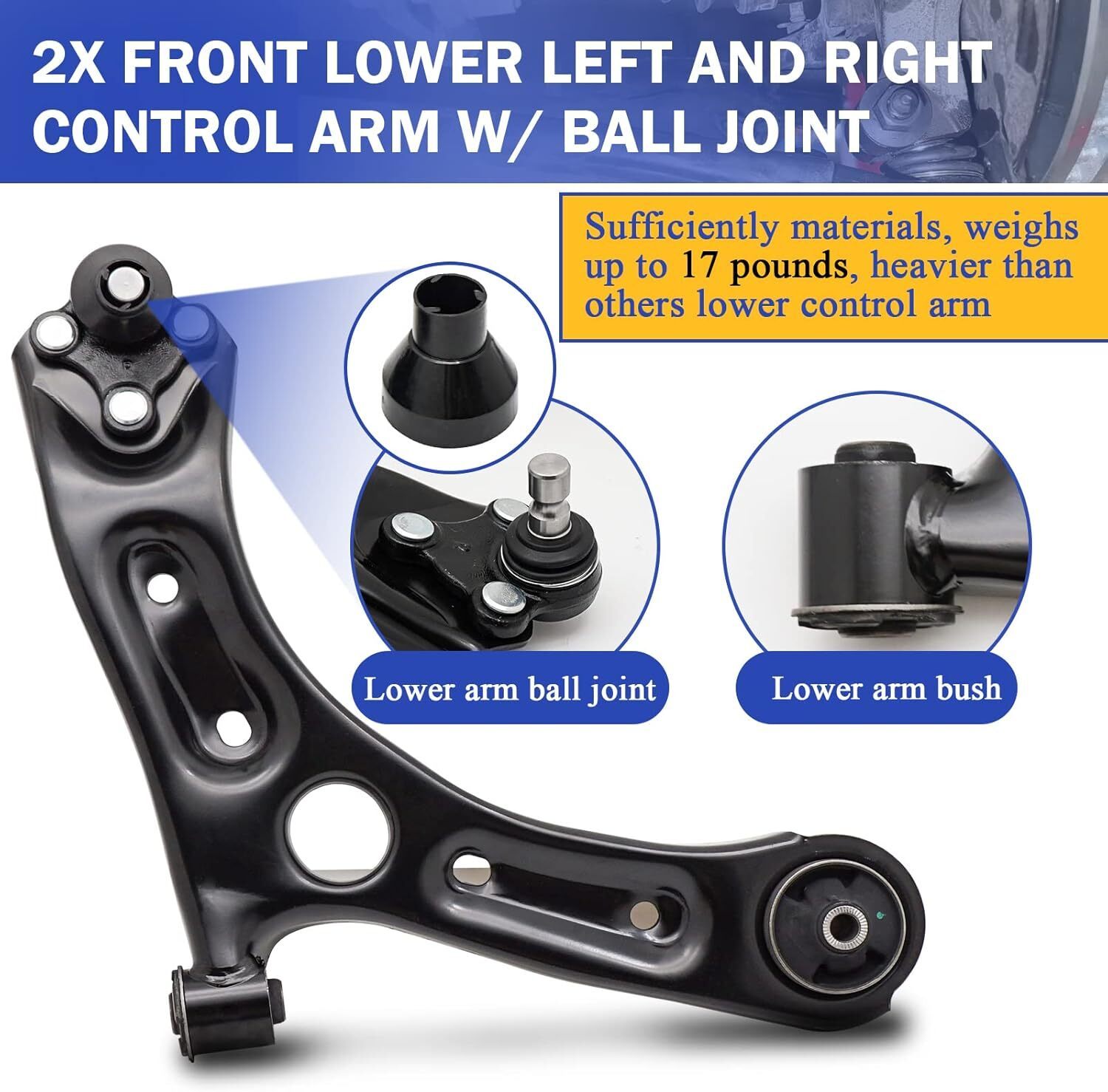 ?Manufacturer Part Number# 54500C1000 54501C1000, 54500E6100 54501E6100. Replacement control arm, directly install. ?Compatible with: For Hyundai Sonata 2015-2017, for Kia Optima 2016-2020. Please see product description below for more vehicles. ?High-quality: Sufficiently materials, weighs up to 17 pounds, heavier than others lower control arm. The parts are manufactured in strict accordance with OEM specifications, stable characteristics, high reliability. Perfect match for the original car. ?Package included: Front Left Lower Control Arm x1, Front Right Lower Control Arm x1. With ball joint(s), with bushing(s), rubber bushing. Not included instruction manual. ?After-Sales Service: We offer 24 hours customer service and 1 year warranty, If you are encounter product installation, product quality and other problems, please feel free to contact us.