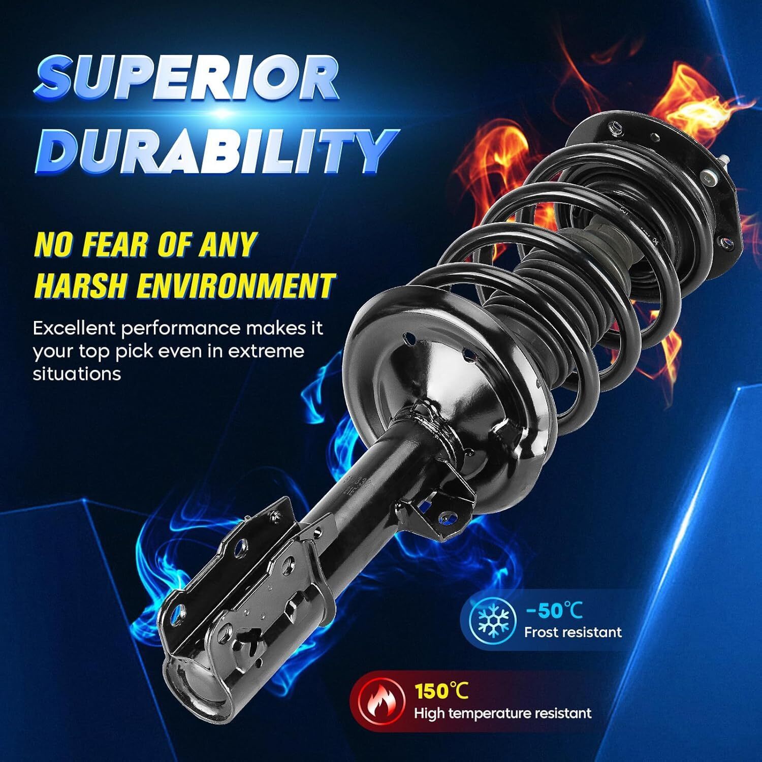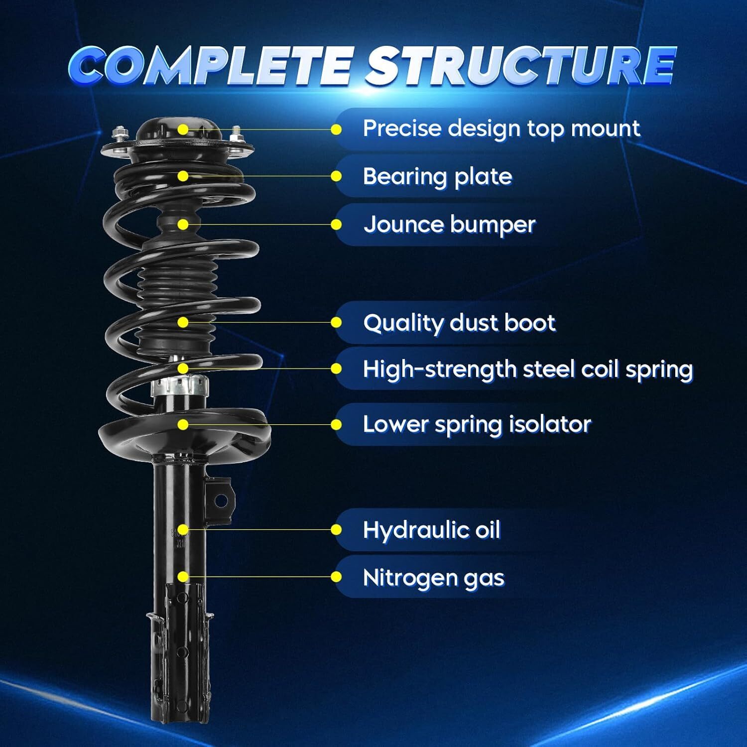 Compatible with: for Chevy Malibu 2004-2012, for Pontiac G6 2005-2010, for Saturn Aura 2007-2009 Replace for Part Number: Replace 172199 172200 Kit Includes: 1x front left strut shock assembly with coil spring, 1x front right strut shock assembly with coil spring Inflatable Design: Greater damping for greater work reliability; High-pressure gas and oil are separated by a floating piston, eliminating oil emulsification Quality Assurance: 12-month warranty! tested before shipping