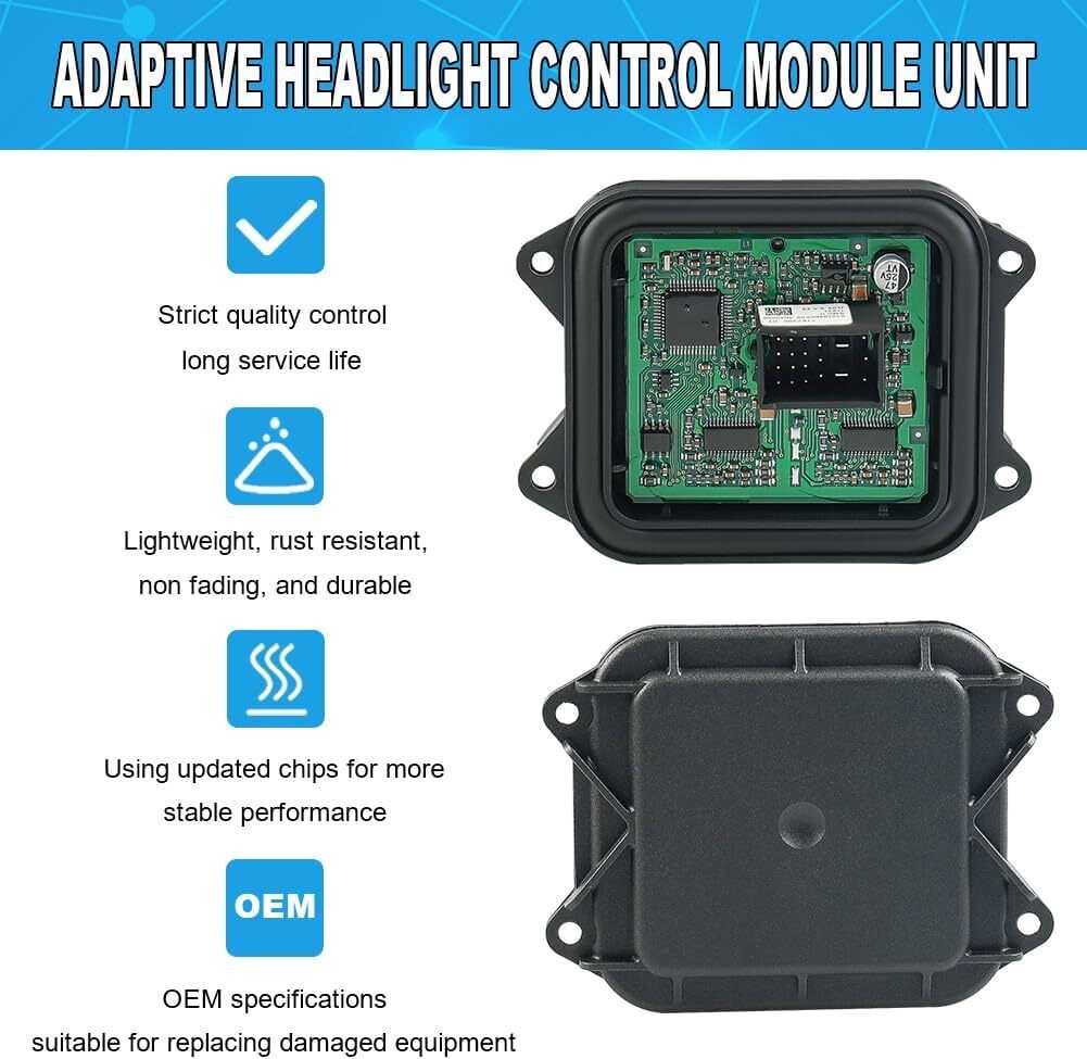 Vehicle Application: Adaptive TMS Headlight Module Compatible with BMW E90 E91 E92 E93 E70 E71 E89 M3 X5 X6 Z4 xDrive, 2007-2012 328i 335i, 2007-2008 328xi, 2009-2011 335d, 2011-2012 335is, 2008 335xi OEM Part Number: Replacement for OE 63 11 7182396 63117182396 7182396 63117171587 7171587 63117189311 63117295702 7295702 Material Reliability: The adaptive headlight control unit steering ballast is made of reliable materials to improve reliability and durability. Ensure product performance and extend service life Easy Installation: With a direct replacement design, the adaptive headlight module can be easily replaced to help you solve headlight problems, and tested before leaving the factory to ensure reliability and excellent performance Function: If the dashboard displays an adaptive headlight malfunction, a new headlight module needs to be replaced to help the vehicle return to normal operation. Please check product compatibility before purchasing
