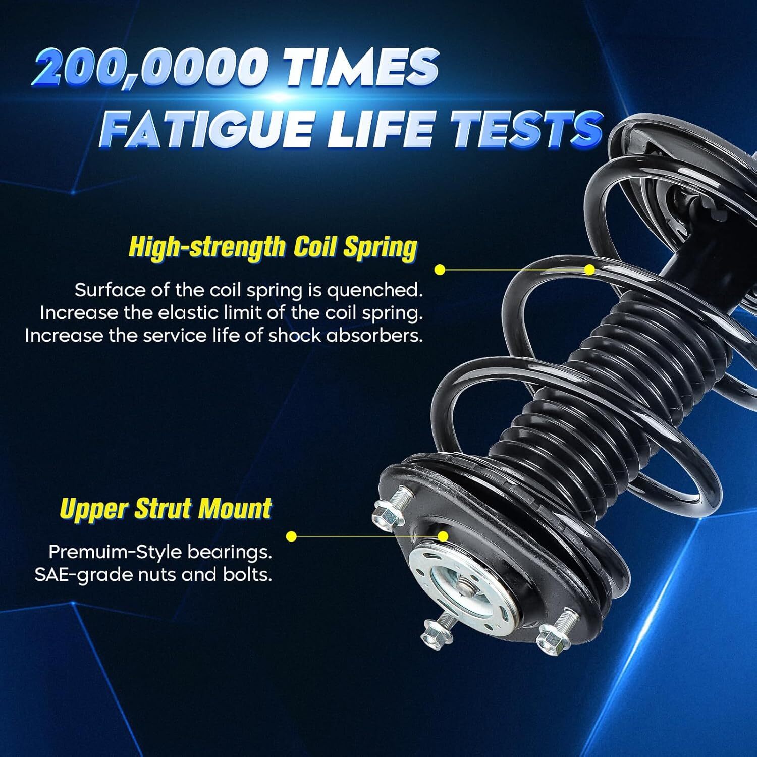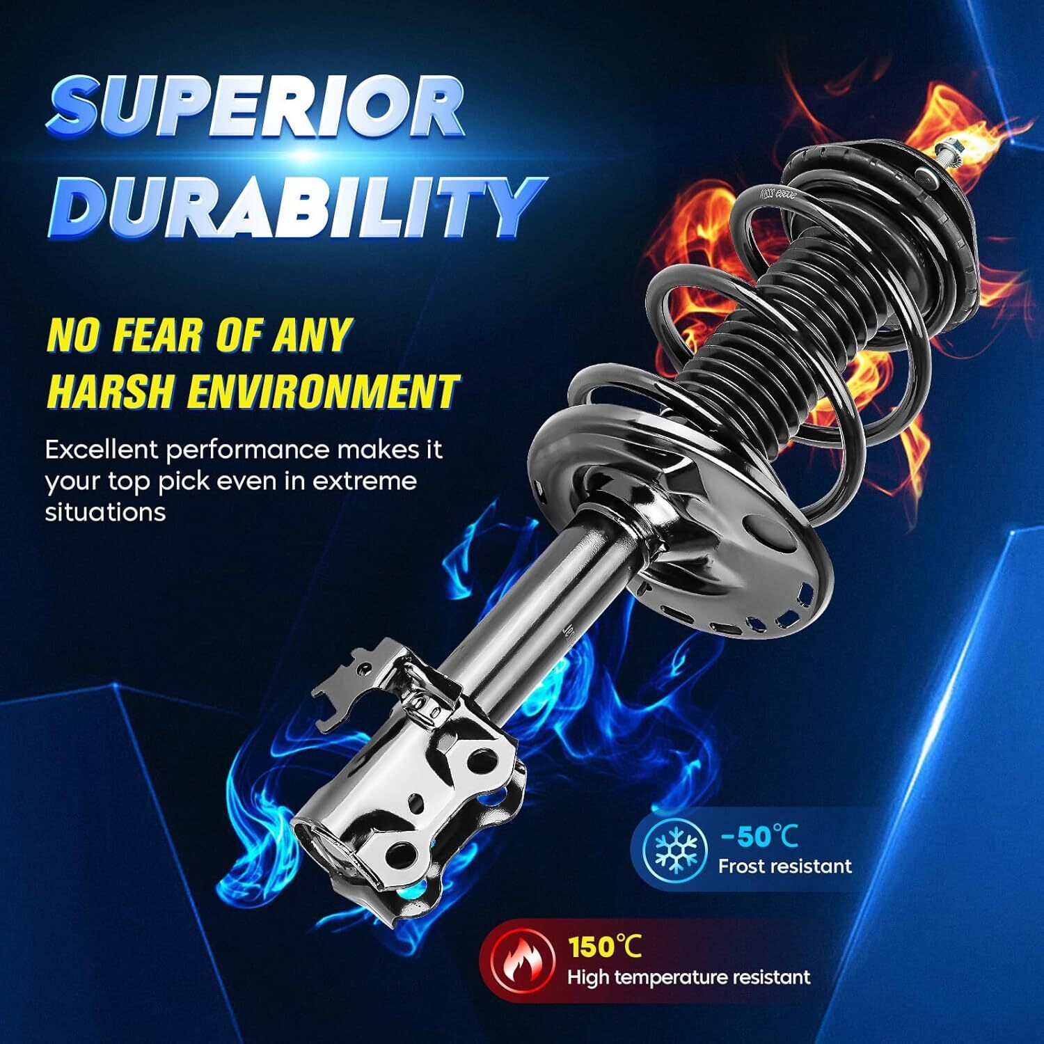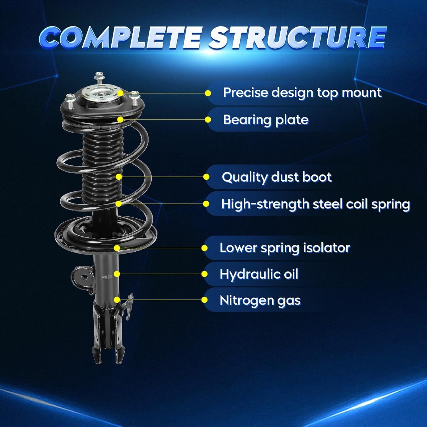 Compatible with: for Toyota RAV4 2.4L L4 2006-2008, for Toyota RAV4 2.5L L4 2009-2012 Replace for Part Number: Replace 172275 172276 Kit Includes: 1x front left strut shock assembly with coil spring, 1x front right strut shock assembly with coil spring Inflatable Design: Greater damping for greater work reliability; High-pressure gas and oil are separated by a floating piston, eliminating oil emulsification Quality Assurance: 12-month warranty! tested before shipping, perfect match to the factory part. 100% satisfaction guarantee. for any problems, Pls contact us via email