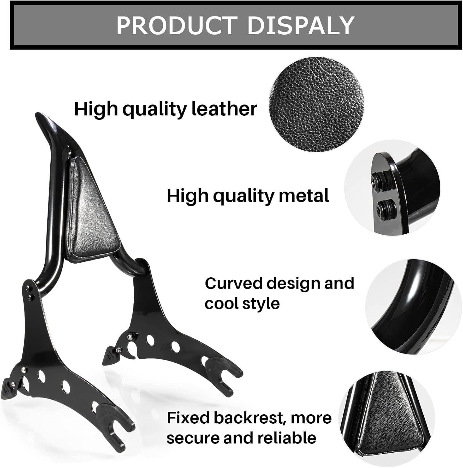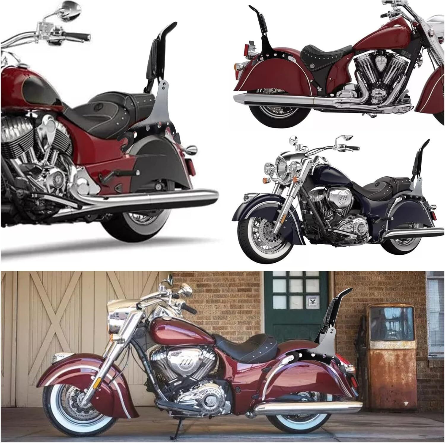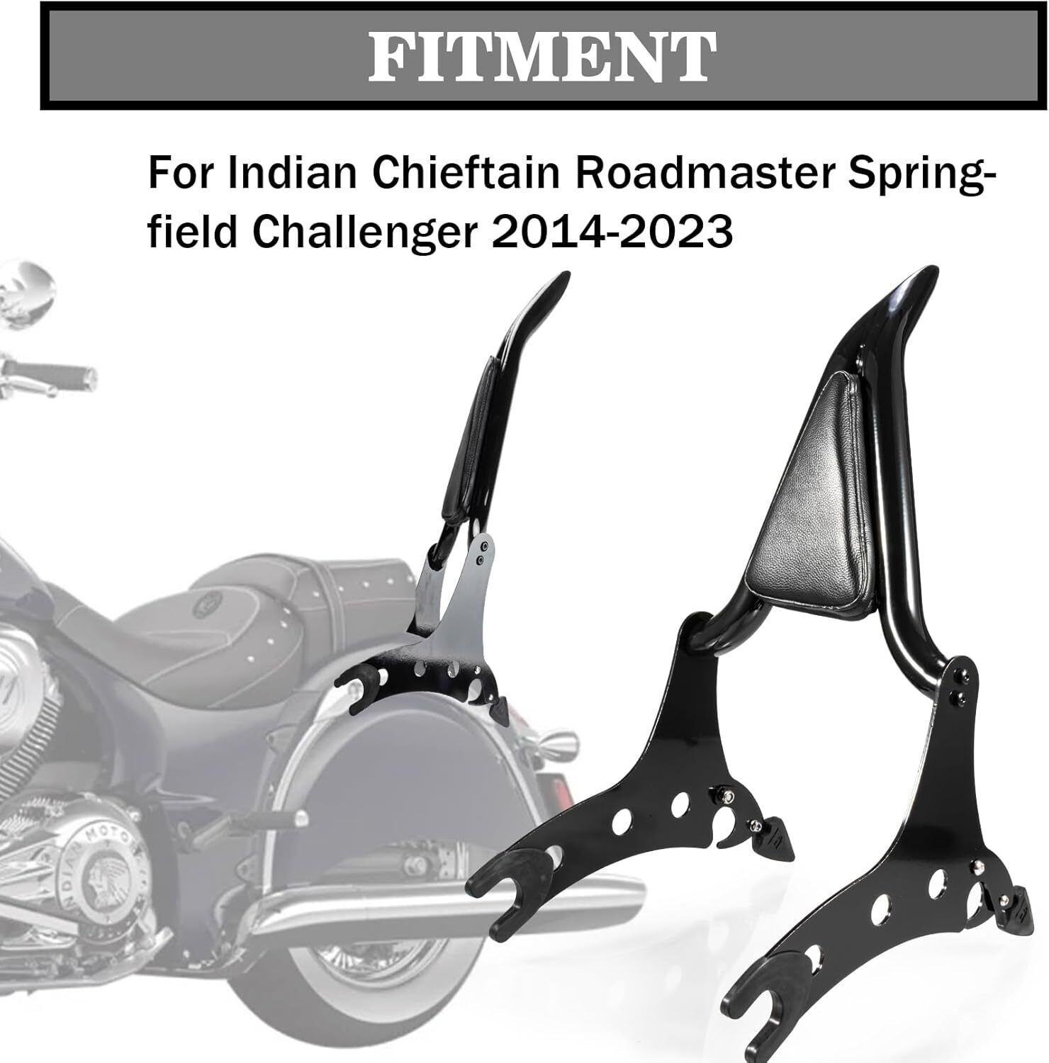 ?Fitment?This backrest for 2014 2015 2016 2017 2018 2019 2020 2022 2023 Indian Chieftain Roadmaster Springfield Challenger.For Classic, 111, 116, Jack Daniels Limited Edition ,Dark Horse, Elite, Limited, Limited Icon, (NOTE: Same style locking system as Indian OEM mounting rack. Not Include mounting spools.) ?Color?Black ?Material?Our protective sissy bars are specially designed with premium-quality stainless steel that supports safety concerns. The solid connectors to your docking hardware and shock absorber areas so they stay in place when you lift up your moto, and the built in three pieces makes for easy removal and cleaning. ?Application?We spared no expense or brilliant concept to ensure this black sissy bar backrest pad set delivers excellent protection peace of mind. We kept the design simple?no busy logos or messages. Put the custom-sized racks in your Indian, and rear luggage rack areas, then enjoy the handsome look and stay-put functionality. ?Package?1* Detachable Backrest Sissy Bar