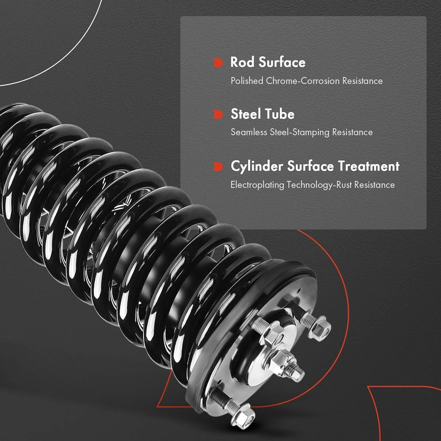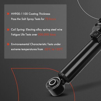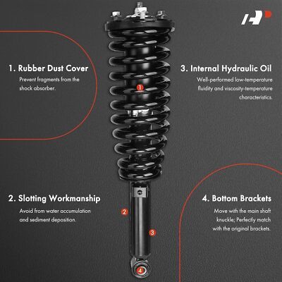 [Vehicle Fitment]: Compatible with Kia Sorento 2008-2009 V6 3.3L, Sorento 2003-2006 V6 3.5L, Sorento 2007-2009 V6 3.8L---RWD [Reference Number]: 171109, 171110, 1345764L, 1345764R, G57457, G57458, MSS050043, MSS050044, 710757, 710758, 546403E023, 546403E100, 546303E023, 546303E100 [Installation Position]: Front Driver and Passenger Side (Front LH RH) [Specifications]: ?Strut Included: Yes; ?Coil Spring Included: Yes; ?Mount Included: Yes; ?Dust Shield Included: Yes; ?Mounting Hardware Included: No; ?Extended Length (in.): 14.37; ?Compressed Length (in.): 19.37; ?Travel Length (in.): 5.00 [1-Year Quality Guarantee]: This brand new set of suspension shock strut assembly for car is the ideal choice for direct replacement. We extremely value your satisfaction and strive to provide you good shopping experience. Any further question, please feel free to contact us at any time.