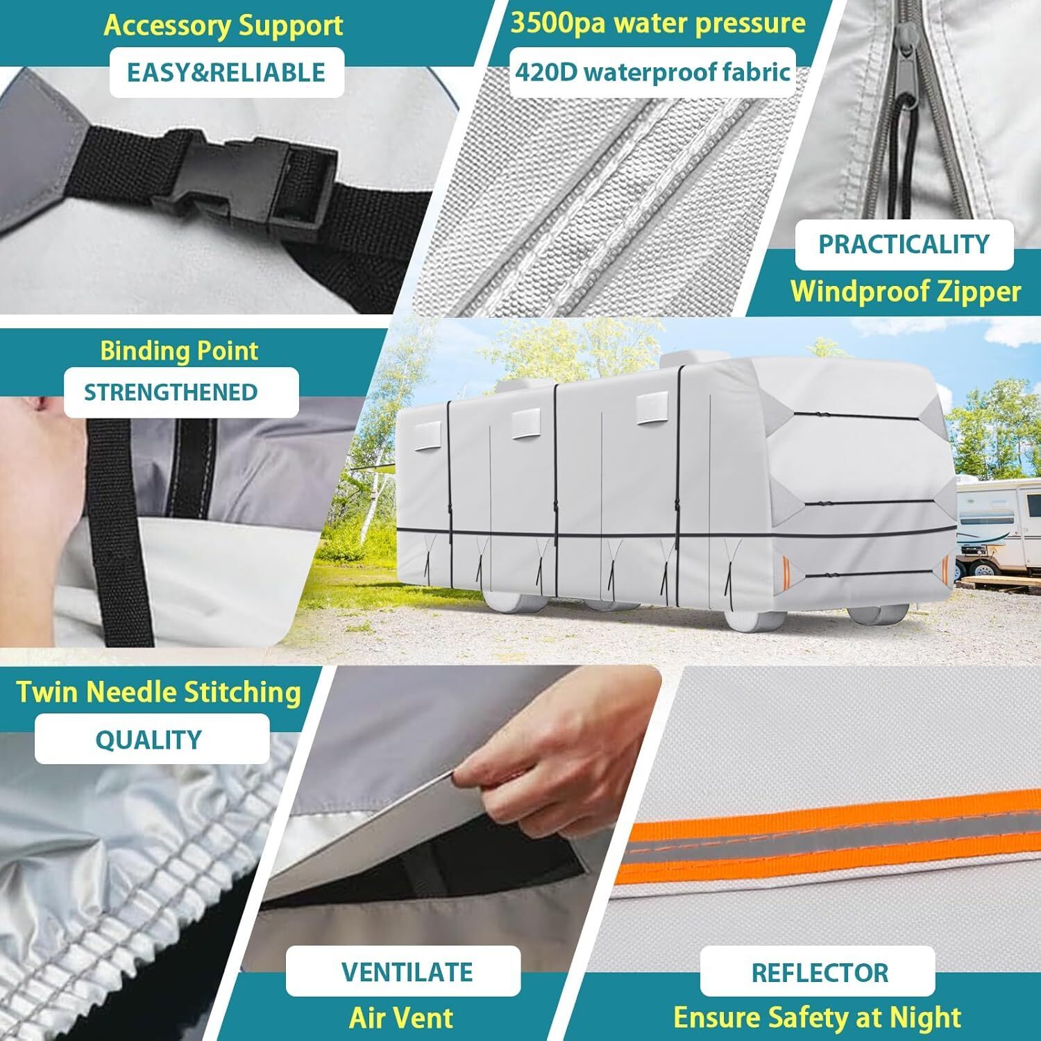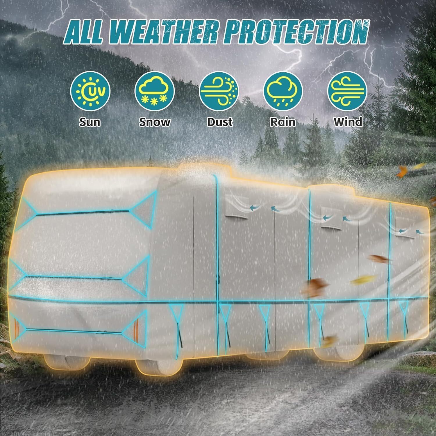420D Top Class A RV Cover Fits 33'-37' Waterproof Rip-Resistant Anti-UV