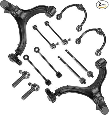 ?Compatibility?Fits for Jeep Commander 2006-2010, Grand Cherokee 2005-2010 (Excluding SRT and SRT8) ?Kit Includes?2x Front Upper Control Arms w/ Ball Joint, 2x Front Lower Control Arms w/ Ball Joint, 2x Front Outer Tie Rod End Link, 2x Front Inner Tie Rod End Link, 2x Front Sway Bar End Link, 2x Rear Sway Bar End Link ?Enhanced Structural Strength? High-strength structure can withstand repeated impact loads, making it more stable during operation ?Premium Ball Joints?For noise-free, articulation and durability, we sourced premium ball joints for our tubular upper control arms. Compared to other common ball joint brands, our ball joint exhibits one of the highest articulation angle. ?Safety?Control arm with strong torsional resistance, good stability, better response to wear and fatigue, and long service life.
