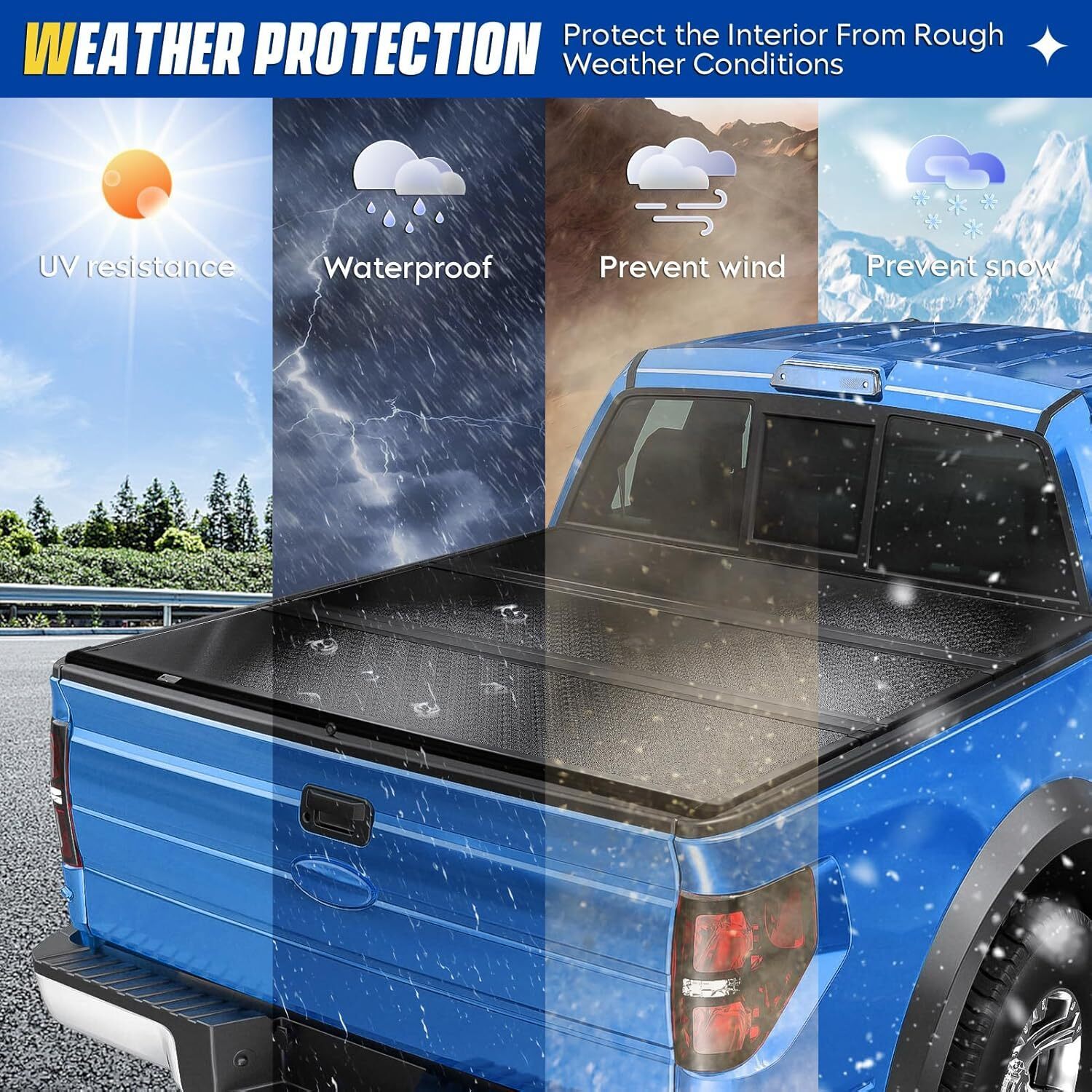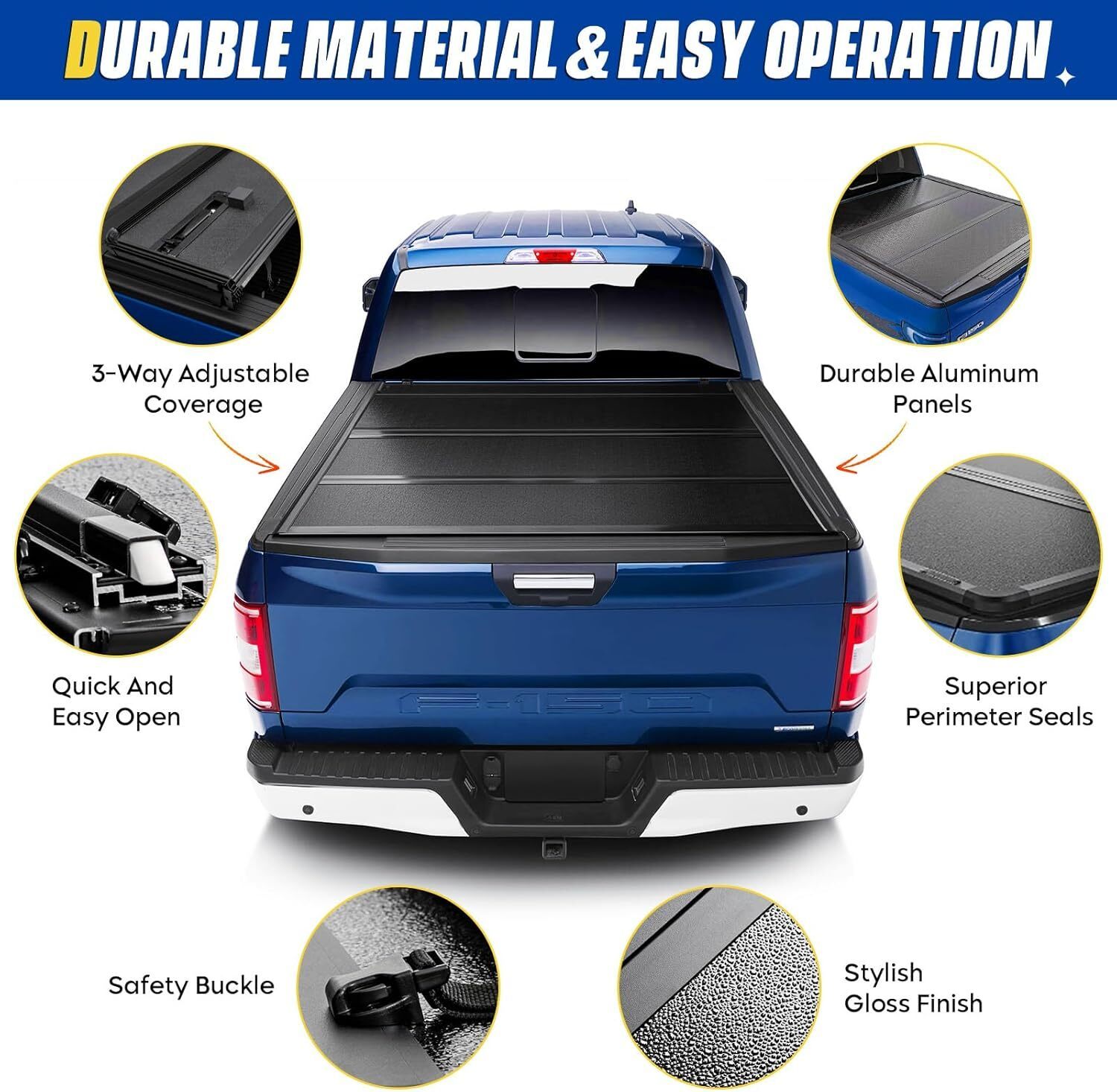 ?Compatible with: for Honda Ridgeline 2017-2023, Fleetside 5 ft 64 in Bed ?Precision Design: Overall matte black exterior; Tri-fold streamlined design fits your truck bed precisely; Hard Panels are scratch, UV and cold resistant. Withstands extreme sun, rain, hail or snow. All bolts are made of high-quality stainless steel; Plastic buckles mount securely; Perimeter seals and hardware are also premium upgraded. ? Durable material: The panel is made of FRP and PP honeycomb material, which has the advantages of lightweight, high load-bearing, high pressure and scratch resistance, and is not easy to deform under strong impact. ?Easy to Install and Operate: Clamp-on installation requires no drilling, no tools and takes only a few minutes. Allows quick access to your truck bed when needed. ?Weather Protection: Our truck Tonneau covers can withstand all climatic conditions, protect your items from the elements, always keep your cargo and truck bed dry and clean, and prevent your cargo from flying out.