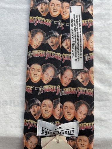 Ralph Marlin Vintage Mens Three Stooges Heads Necktie | Black | Neck Tie | Made