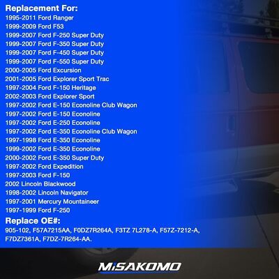 ?NEEDS?After a long period of driving, your car may encounter a problem where shifting becomes very difficult, or suddenly shifts to neutral or even awkwardly stops in the middle of the road. Simply replace the gear shift tube and you can regain a brand new shifting experience, restoring smooth and safe driving. ?BETTER and MORE AFFORDABLE? Steering tube plunger strictly tested before leaving the factory and we beefed up the weak spots that caused the factory model to break. And we will provide more cost-effective products. ?PREMIUM QUALITY?Long life-span matters, that is why our transmission shift tube set is composed of high-quality aluminum, which will be more sturdy and durable, corrosion-resistant and rust resistant, greatly increases the service life. Note:You can apply some high-quality lubricating grease to the interior of the bushing and slider, which will make installation and shifting easier and smoother, and also extend the service life. ?REPLACEMENT?OE Replace part#: 905-102, F57A7215AA, F0DZ7R264A, F3TZ 7L278-A, F57Z-7212-A, F7DZ7361A, F7DZ-7R264-AA. Compatible with 1995-2011 Ford Ranger, 1999-2009 Ford F53, 1999-2007 Ford F-250 Super Duty, 1999-2007 Ford F-350 Super Duty, 1999-2007 Ford F-450 Super Duty, 1999-2007 Ford F-550 Super Duty, 1997-2002 Ford E-350 Econoline Club Wagon etc. Please refer to the product description for all adaptations. ?12-MONTH WARRANTY? If for any reason at all, you are not fully satisfied with the shift tube plunger, simply contact us through amazon message at any time. We will provide comprehensive quality assurance for our product.