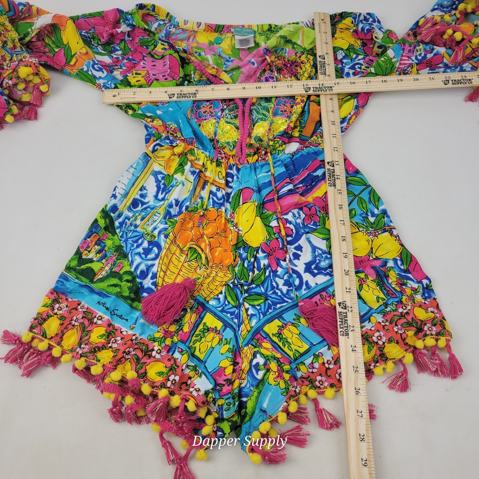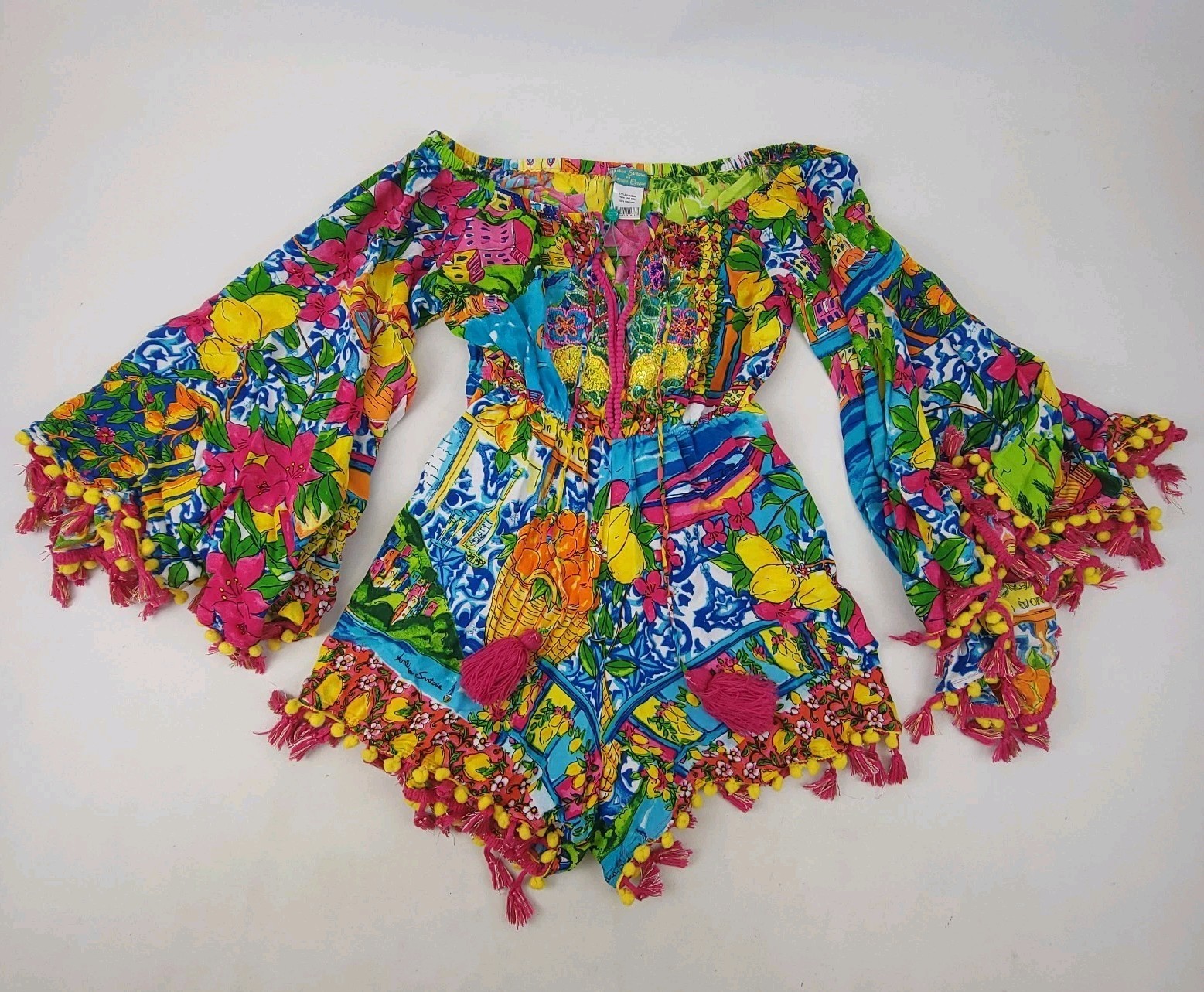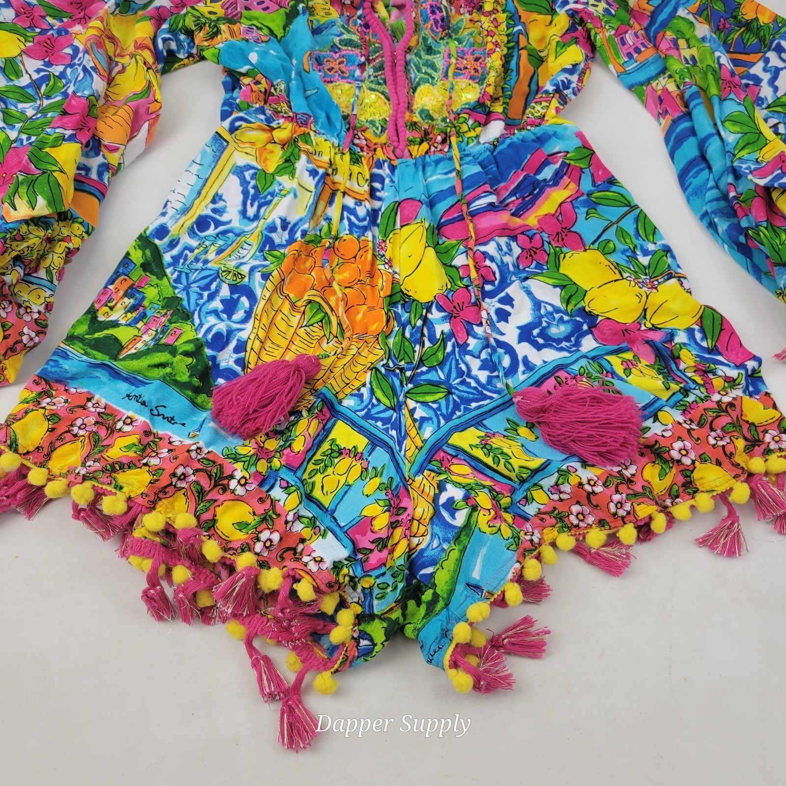 Antica Sartoria Giacomo Cinque Romper OS City by the Sea Pom Tassel Boho Lemon