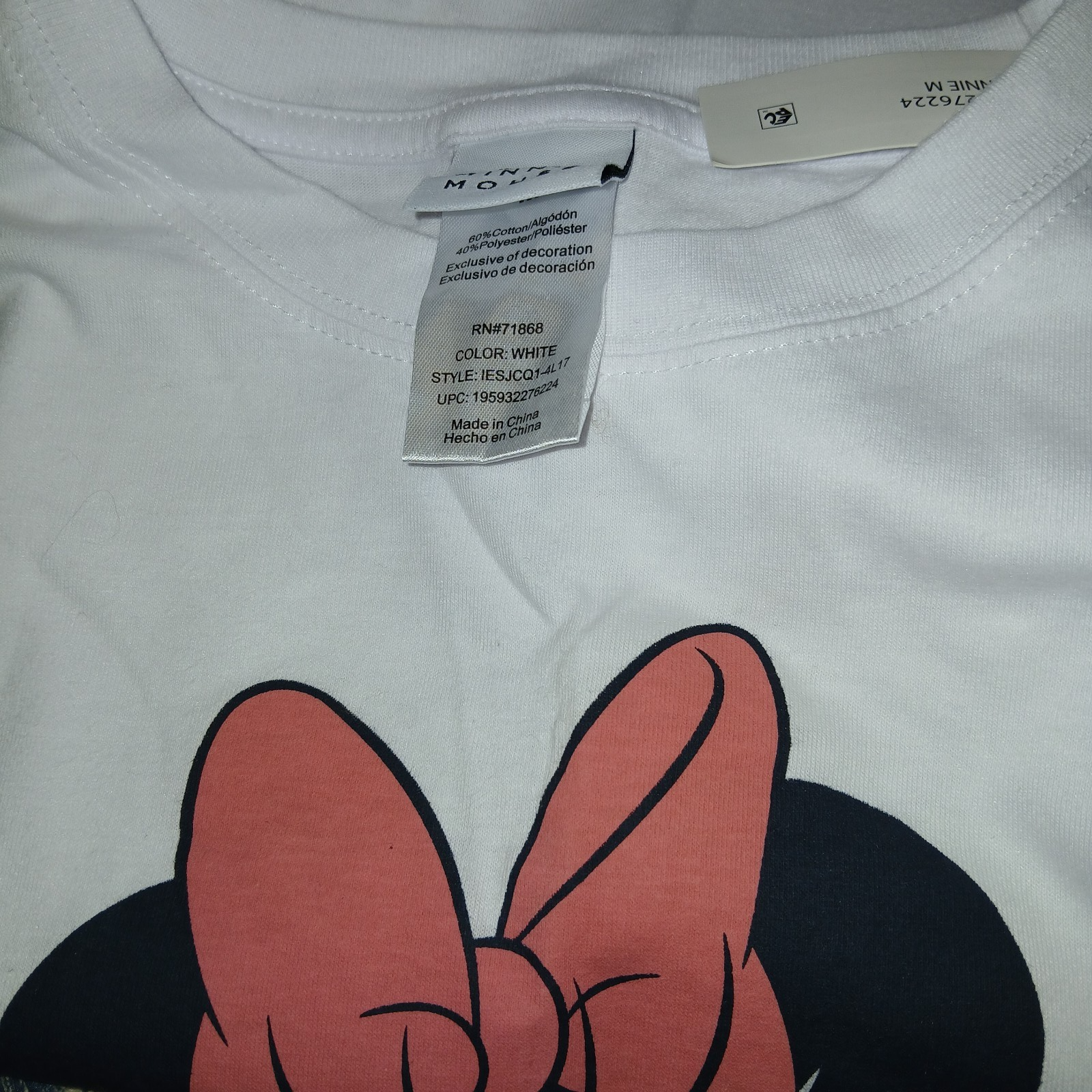 THIS IS A GREAT DISNEY MINNIE MOUSE LADIES SS WHITE T-SHIRT IN A SIZE MEDIUM. IT IS NEW, WITH TAGS.