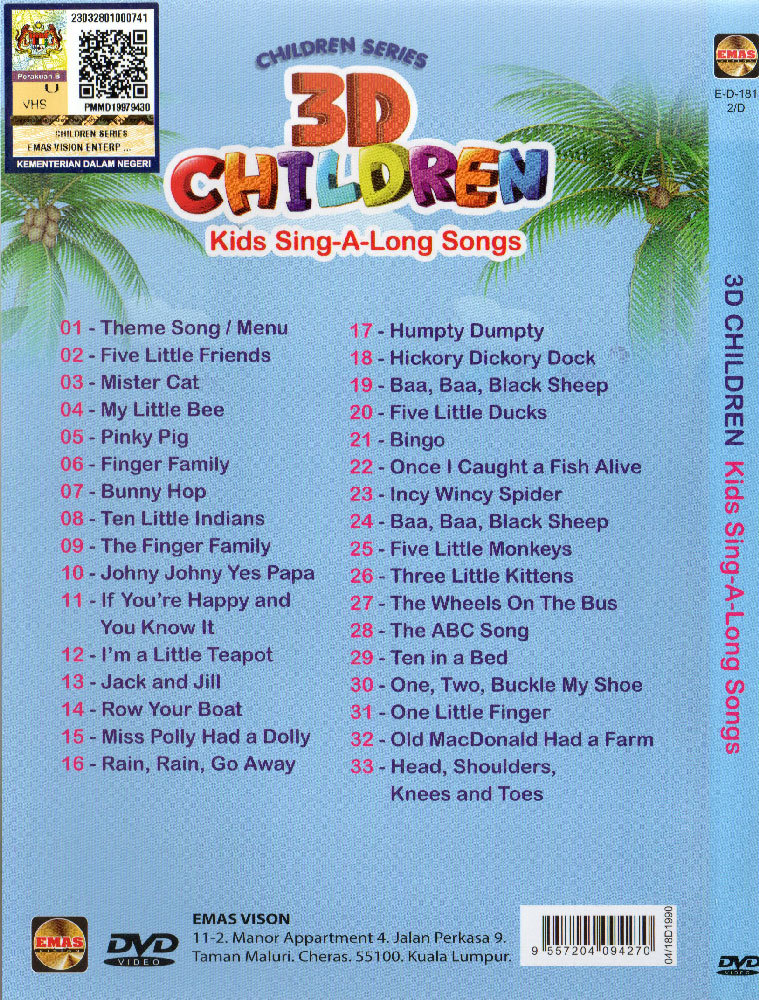 DVD Children Song 3D Children Kids Sing A and 50 similar items