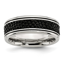 Chisel Stainless Steel Polished Grooved with Genuine Stingray Textured 8mm Band