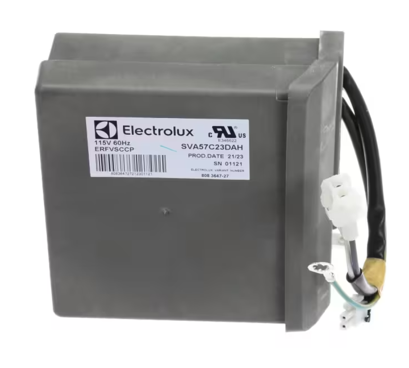 The Frigidaire SVA57C23DAH Inverter Board (also listed as ERFVSCCP and 808 3647-27) is a genuine OEM refrigerator compressor control board that manages variable-speed motor operation for optimized cooling efficiency. Operating at 115V, 60Hz, this inverter board enables energy-saving performance by adjusting compressor speed based on cooling demand, reducing wear and extending component life.