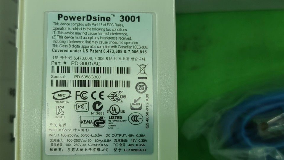 (1) PowerDsine PD-3001/AC Power Injector