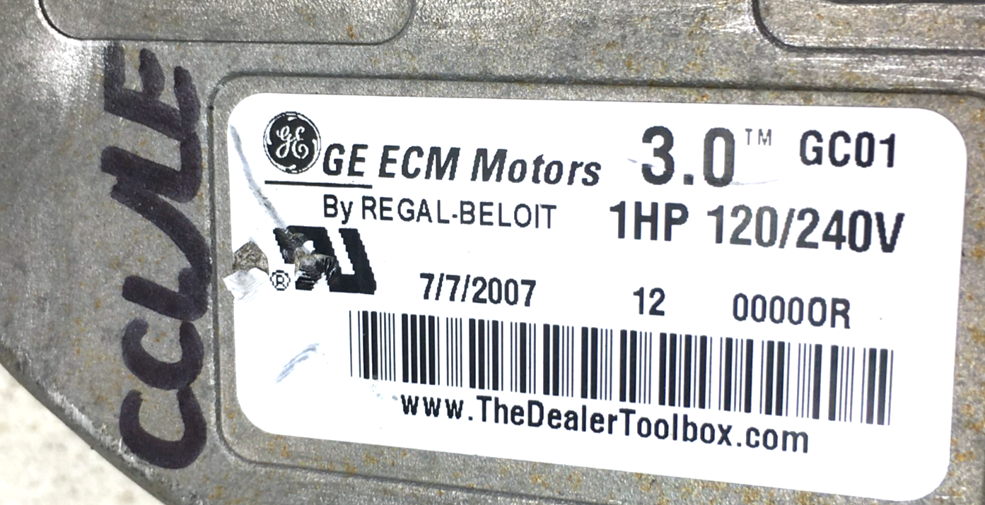 This is GE ECM 3.0 GC01 1HP 120/240V Module only for CCW Lead End rotation used part. Dated 2007 year. Motor not included, for sale is module only.
