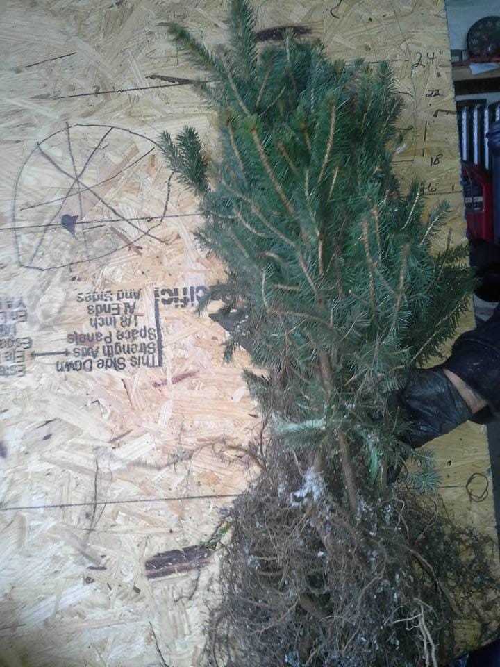 First Photo is an actual Norway Spruce Seedling, That is it's natural look with no pruning. However you can prune them as they grow for more symmetrical look as Christmas trees.
