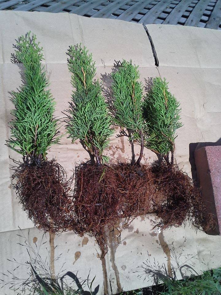 Lot of (4) Emerald Green Arborvitae 3"-5" Tree Seedlings