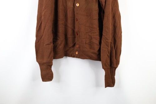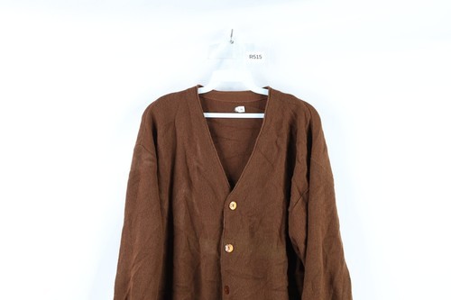 Vtg 70s Streetwear Mens XL Distressed Kurt Cobain Knit Cardigan Sweater Brown