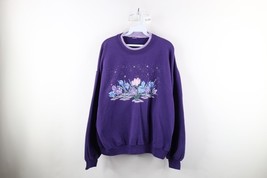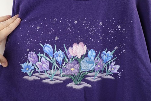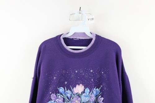 Vintage 90s Country Primitive Womens 2XL Faded Snow Flowers Sweatshirt Purple