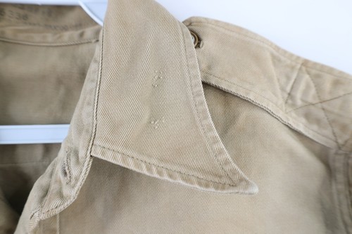 Vtg 50s Korean War Mens Medium Distressed 8.2 oz Military Button Shirt Khaki USA