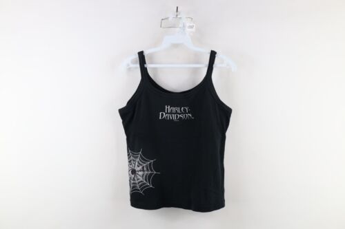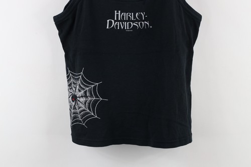 Vtg Harley Davidson Womens L Cropped Ribbed Black Spider Tank Top T-Shirt USA