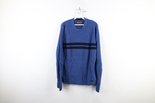 Vintage 90s Abercrombie Fitch Mens XL Faded Ribbed Knit Crewneck Sweater Blue