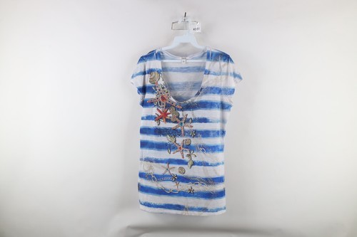 Vtg Cache Mens Large Striped Seashell Star Fish Knit Short Sleeve T-Shirt USA