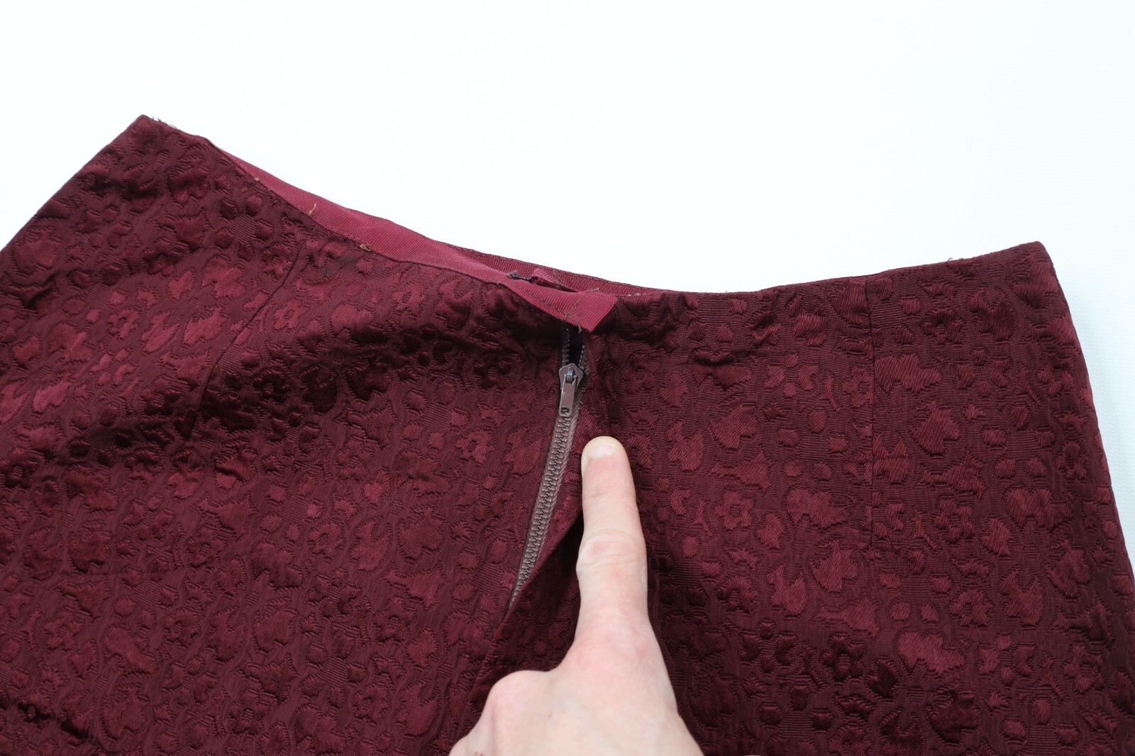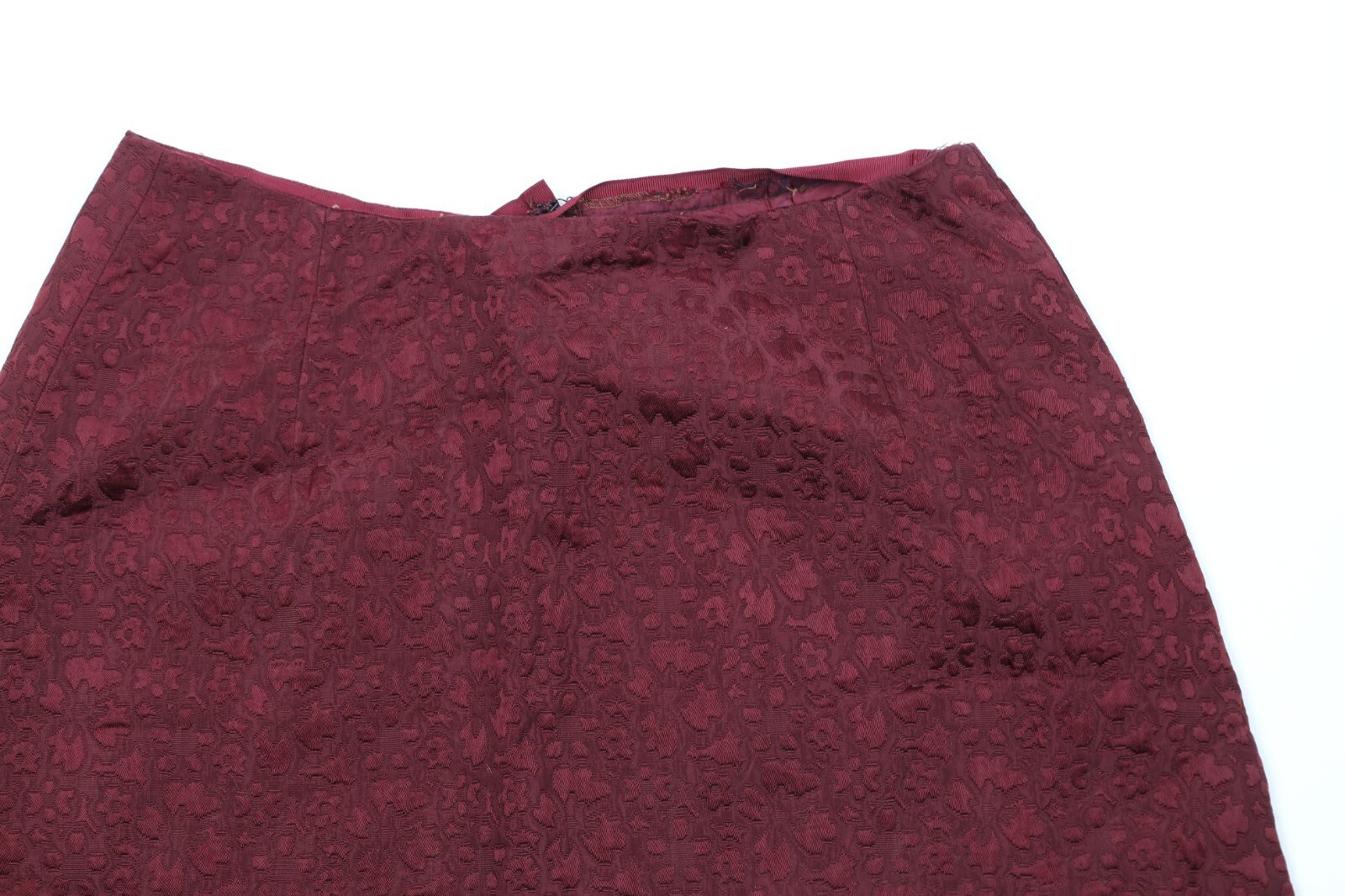 Vintage 50s 60s Rockabilly Womens 26 Silk Jacquard Flower Pencil Skirt Red USA