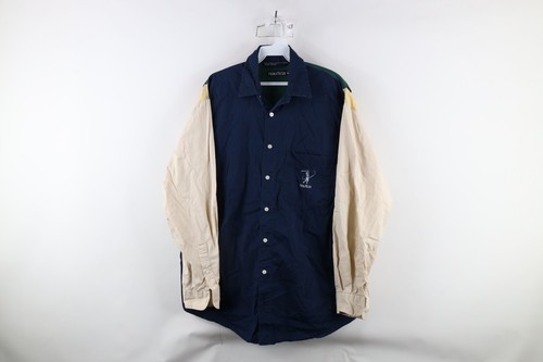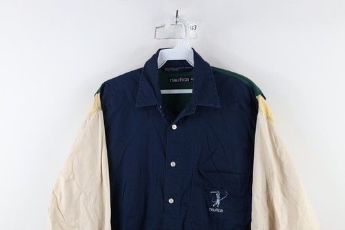 Vintage 90s Nautica Mens Medium Faded Color Block Golf Collared Button Shirt