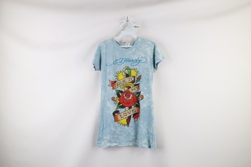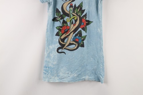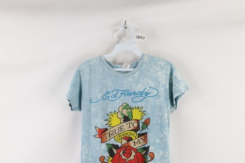 Vtg Ed Hardy Christian Audigier Womens Medium Acid Wash Tattoo Rose T-Shirt USA