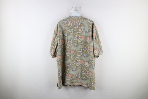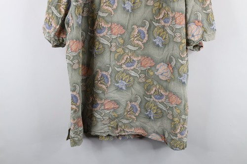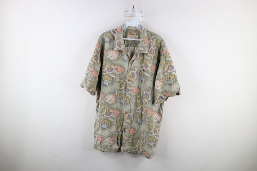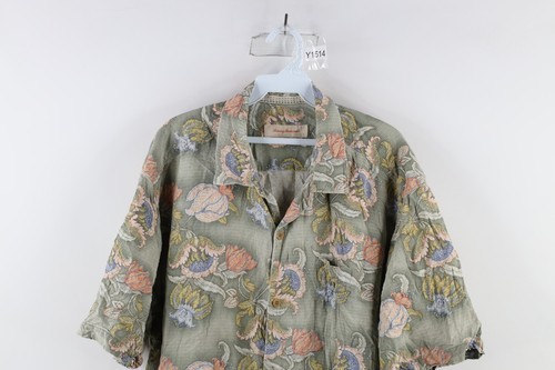 Vtg Tommy Bahama Mens XL Distressed Silk Tapestry Flower Collared Button Shirt