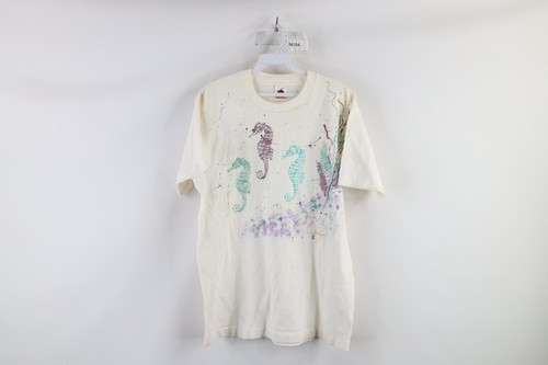 Vintage 90s Streetwear Womens Size Large Distressed Custom Seahorse T-Shirt USA