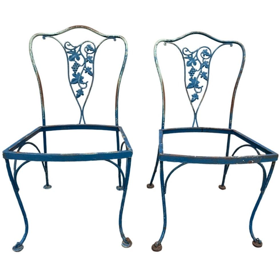 Vintage Woodard Orleans Pattern Wrought Iron Garden Patio Dining Chairs Set 2