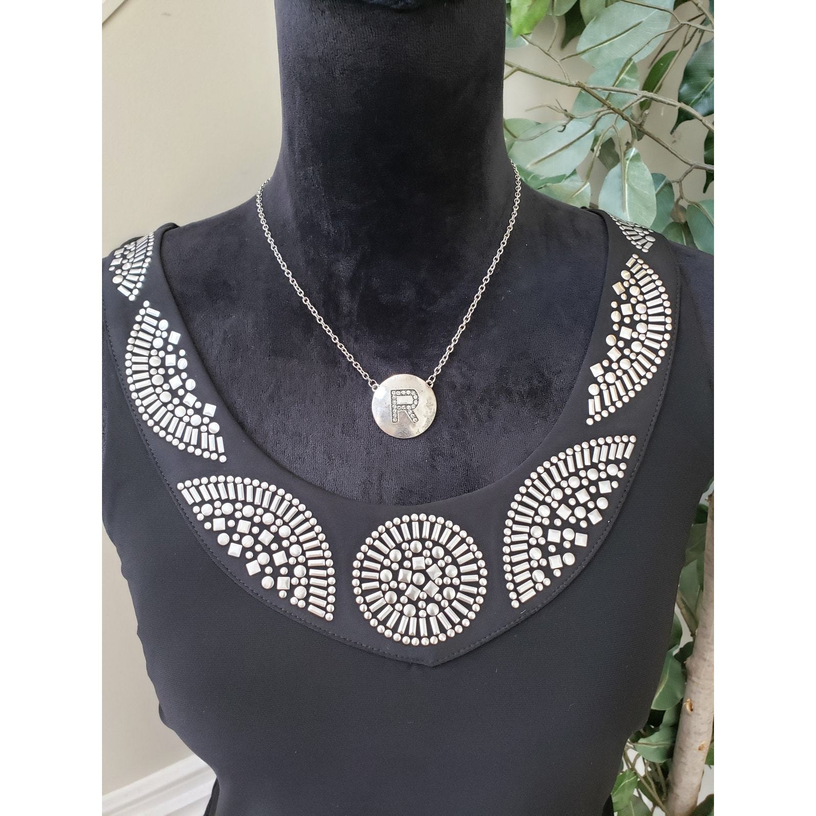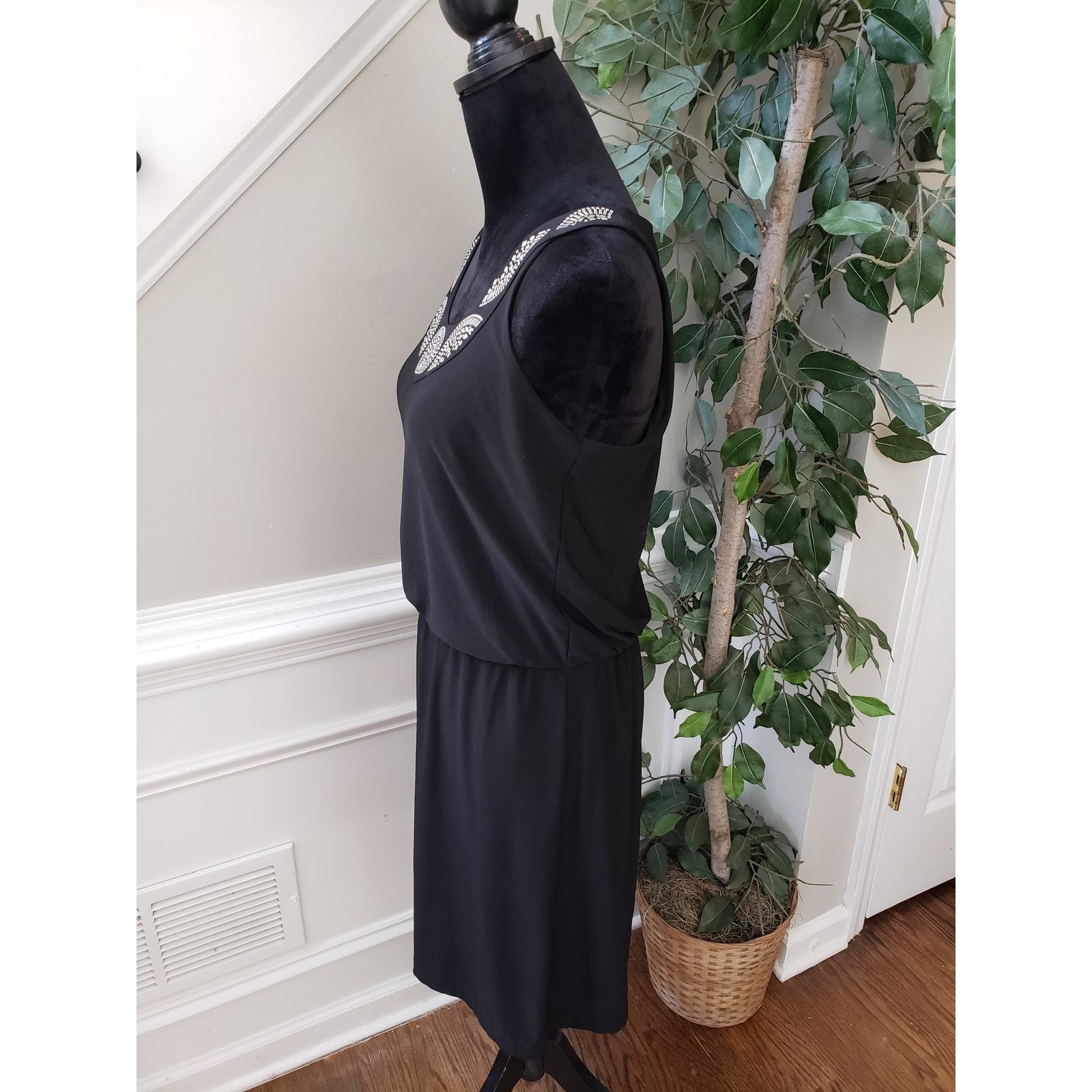White House Black Market Fit & Flare Dress Womens M Black Embellished Neckline