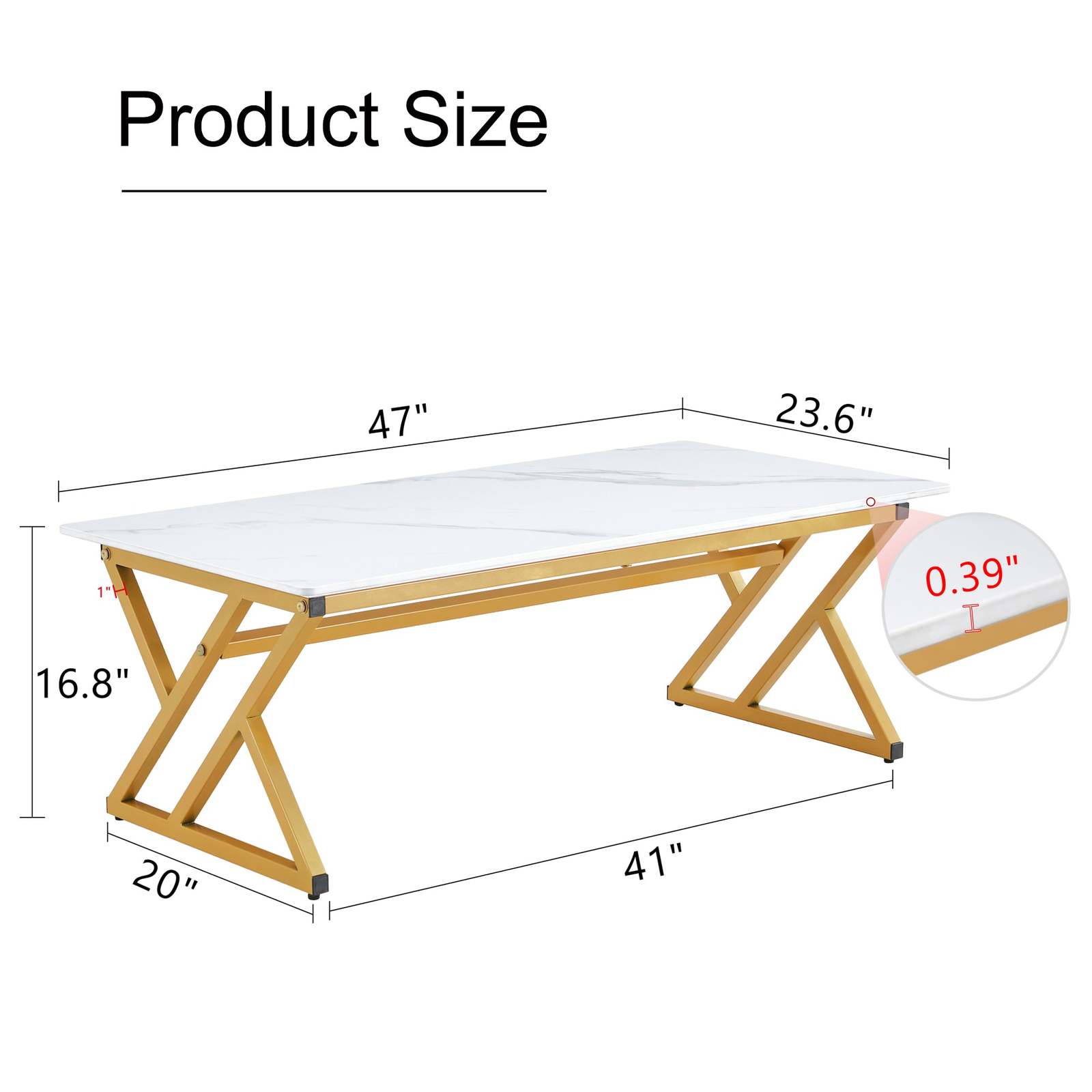 Contemporary Aesthetic Design: The white marble patterned rock tabletop, combined with golden metal legs, is not only stylish in design, but also stable and durable, with stronger load-bearing capacity, adding a touch of fashion to your living room.