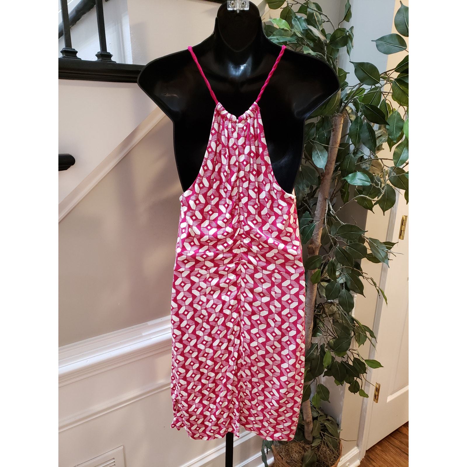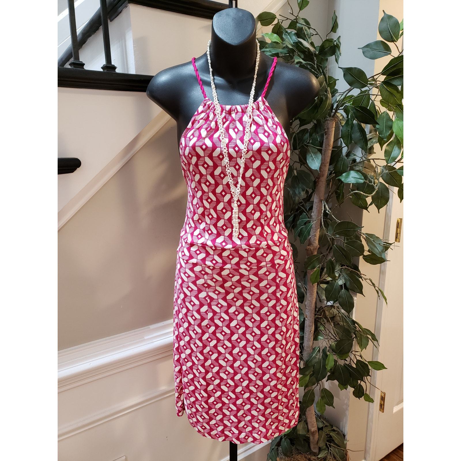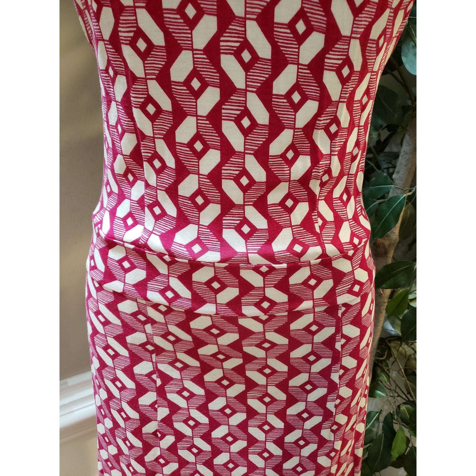 Banana Republic Sheath Dress Women's Size 2 Pink Lined Rayon Geometric Print
