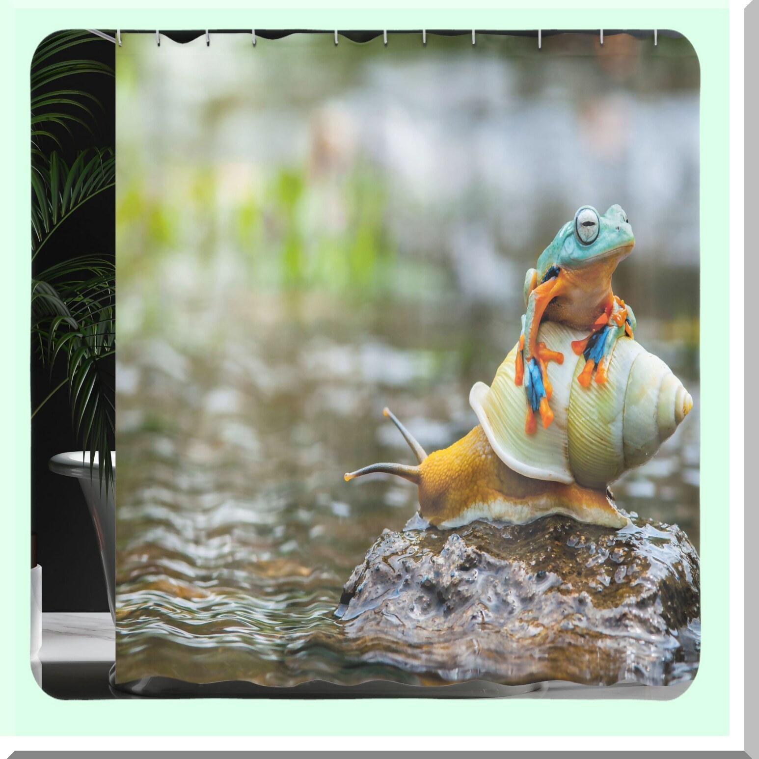 Colorful Frog Snail Riverscape Shower Curtain 69x70 inches