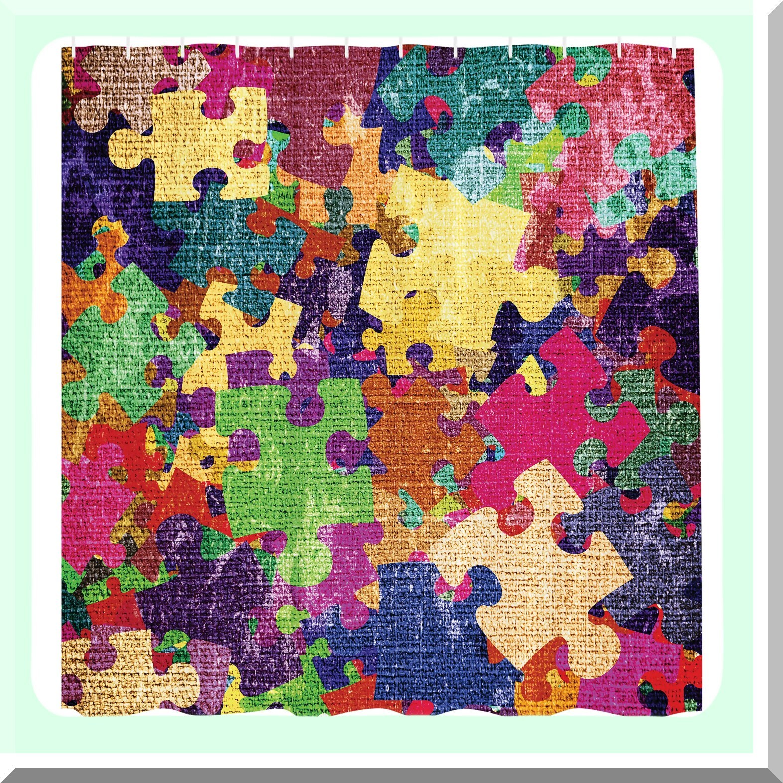 Grunge Shower Curtain with Colorful Jigsaw Puzzles, 69" x 70"
