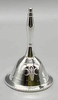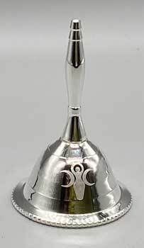 Silver toned alter bell with the Goddess of Earth etched on the front and back. Small bell with a powerful sound. 2 1/2"