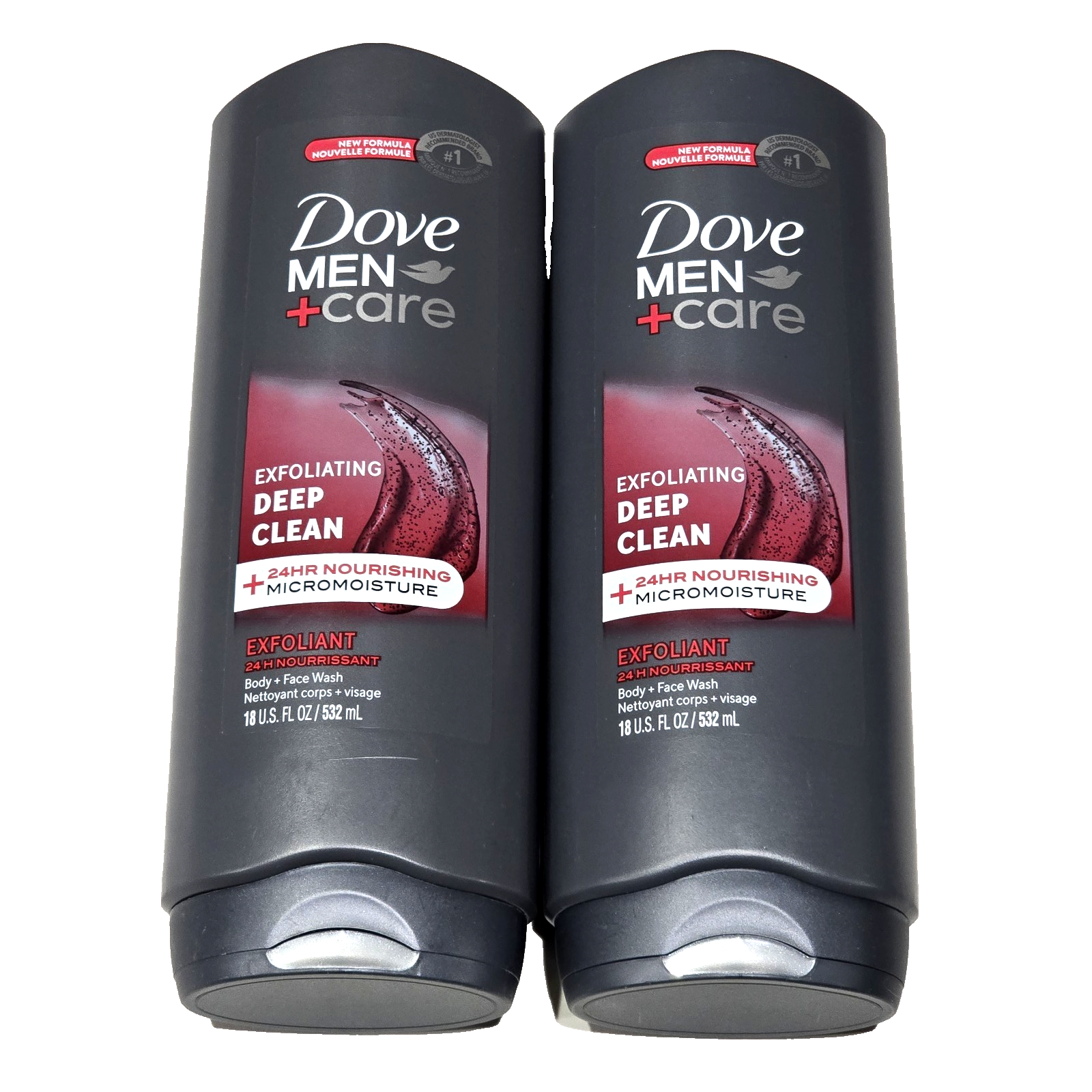 2 Pack Dove Men Care Exfoliating Deep Clean Exfoliant Body Face Wash 18oz.