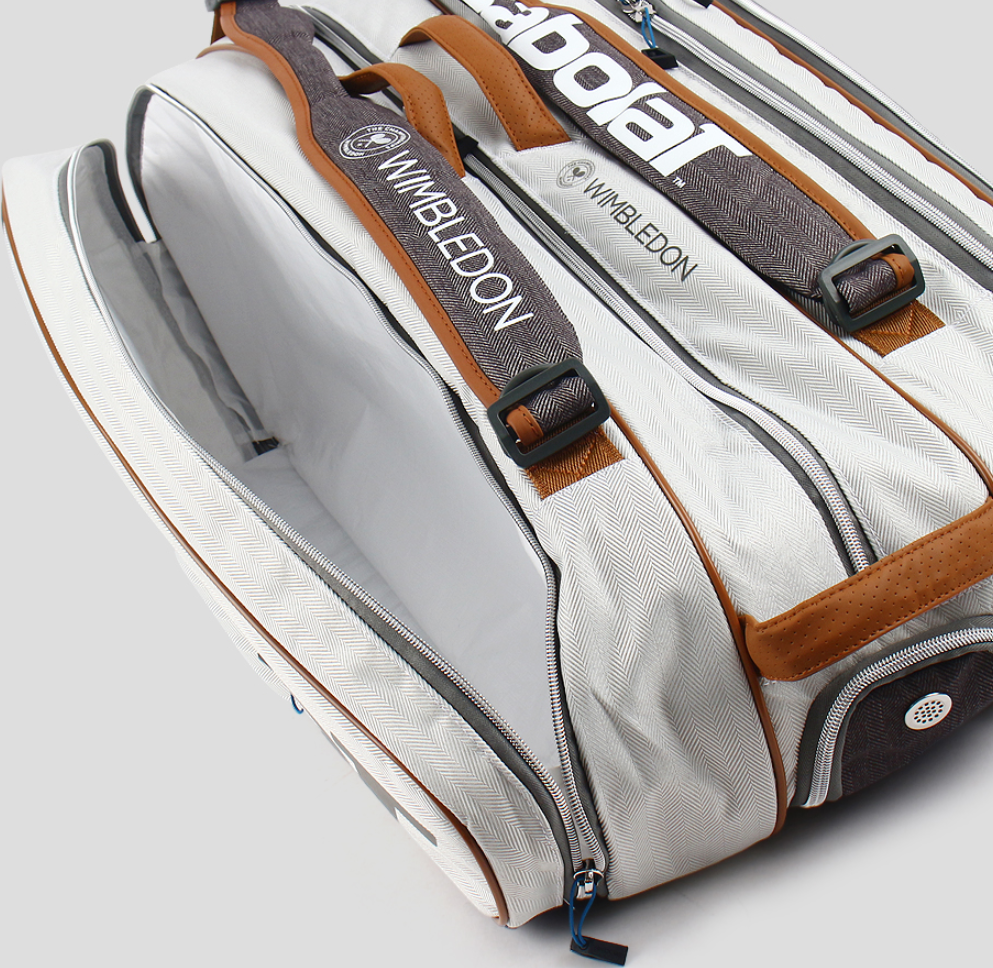 The 2025 RHx9 PURE WIMBLEDON is a triple-compartment racket bag designed with elegance and structure, made specifically to help serious players organize their gear efficiently. It can hold up to 9 tennis rackets.