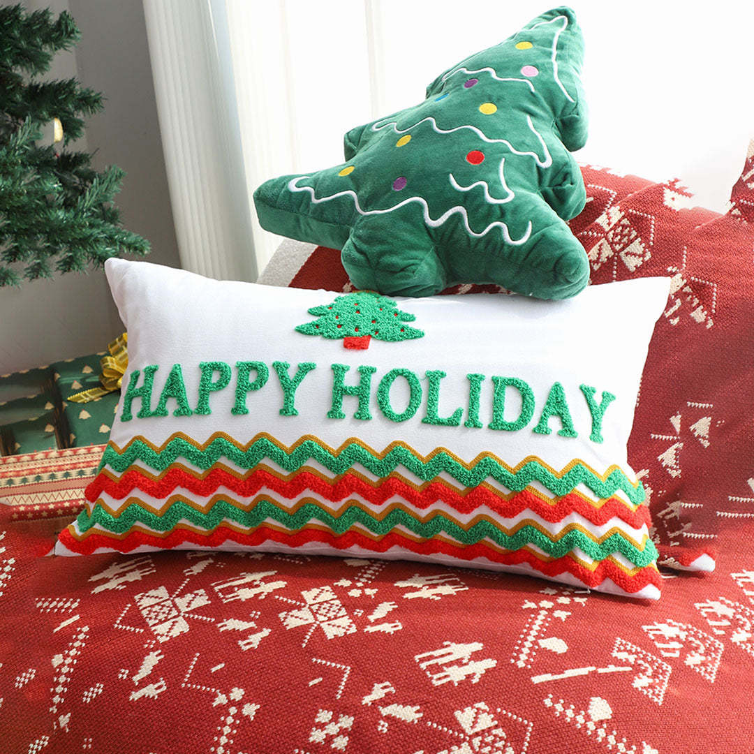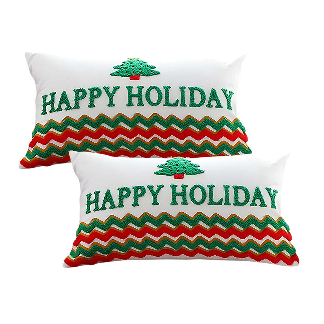 Spread holiday cheer with this delightful pillowcase bundle featuring "Happy Holidays" text and a charming Christmas tree design accented by a decorative zigzag border. Perfect for adding a warm, festive touch to your sofa, bed, or reading nook while keeping your seasonal decor cozy and inviting.