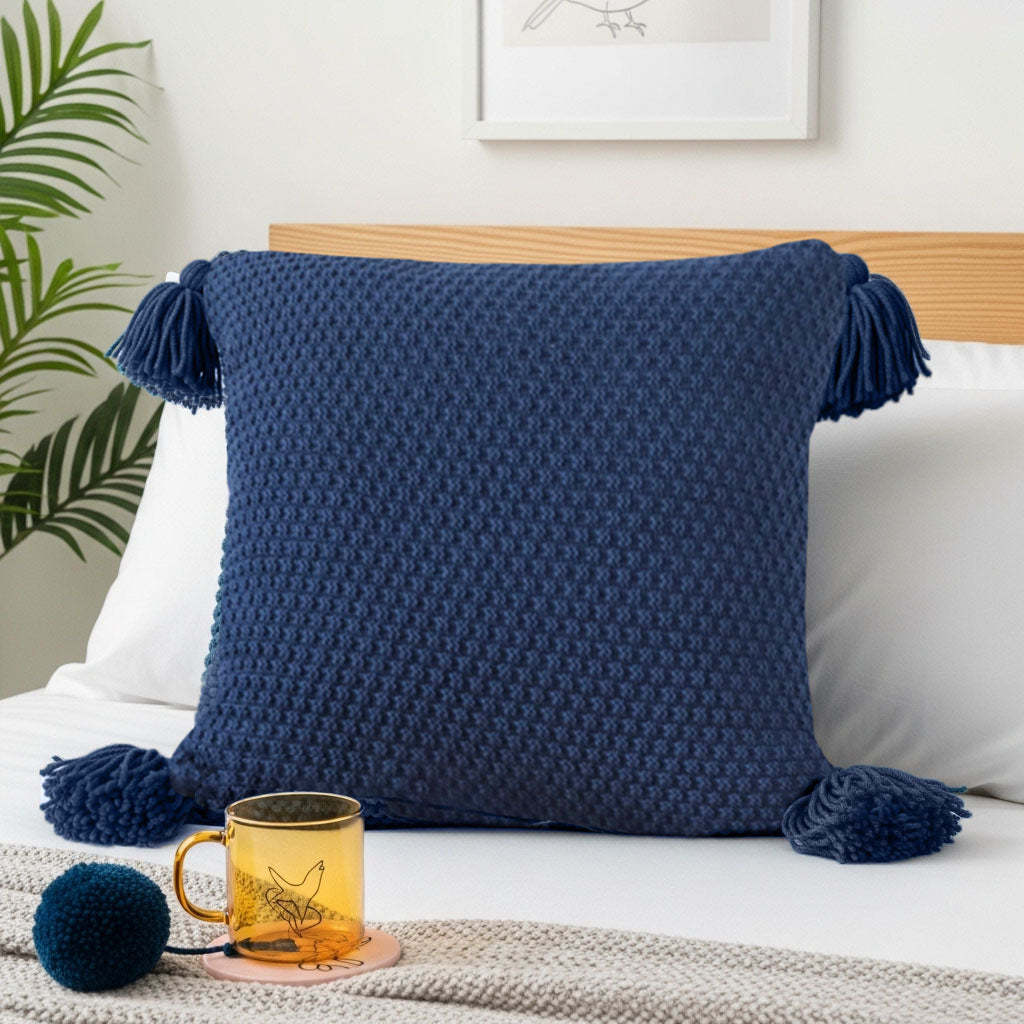 Embrace cozy luxury with these navy blue chunky knit pillowcase covers, designed to add warmth and texture to your decor. The charming corner tassels bring playful movement and stylish detail, while the deep navy hue adds sophisticated comfort to your bedroom or living space. Perfect for creating a welcoming, layered look that feels both modern and timeless.